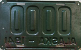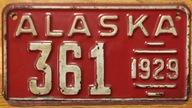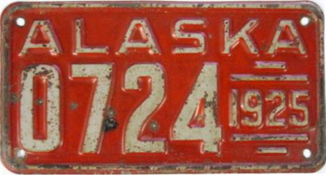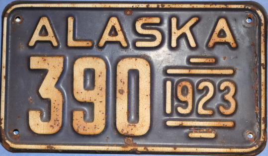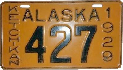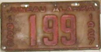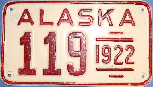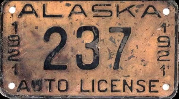 | 1921, в центре порядковый номер (известны от 212 до 323), вверху ALASKA, внизу AUTO LICENSE, по бокам вертикально 1921. легковые автомобили - 237. |