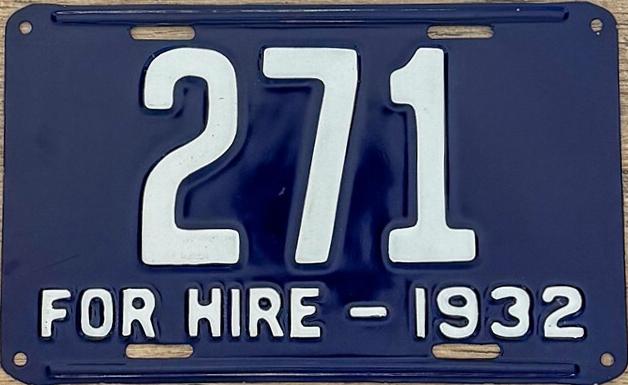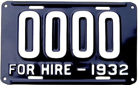 | 1932, известные диапазоны: автомобили и мотоциклы - 316 ... 3046, такси - 126 ... 446. автомобили и мотоциклы - 326, 3046, обратная сторона. такси - 271 (перекрас). образец знака такси для отделений дорожной полиции (введены с 1929 года) - 0000 (перекрас). Жюно 1931-1932 - 114 (перекрас). |