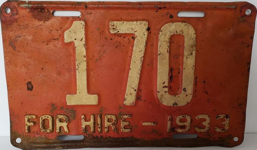 | 1930, известные диапазоны: легковые - 121 ... 1800, такси - 131 ... 450. легковые автомобили - 1314, 1800 (перекрас не в те цвета). официальные автомобили - 25 (фантазийный тип номеров?). Жюно 1930-1931 - 550. Жюно, дилер 1930-1931 - 10, размер знака 10 х 5 дюймов. |