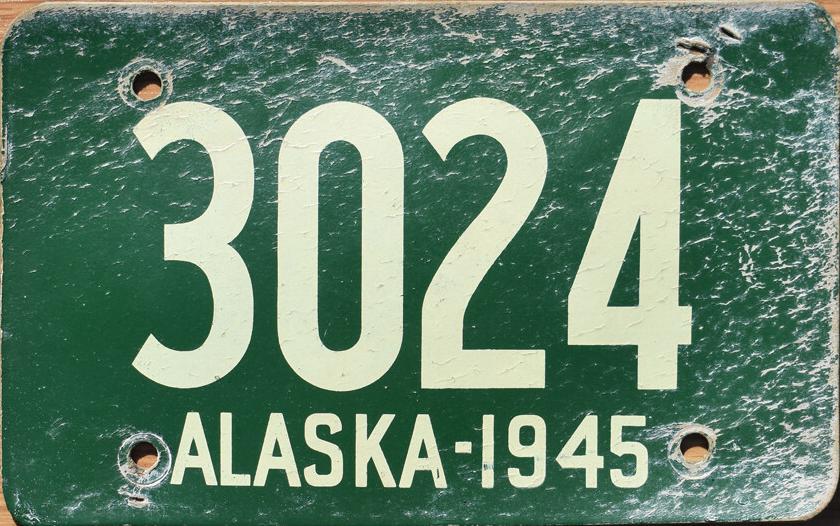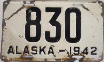 | 1943, известные диапазоны: автомобили - 163 ... 7721, такси - 10063 ... 10888. автомобили - 5642, 6478 (Шевроле 1942 года, Фэрбенкс, советские лётчики, перегонявшие лендлизовские самолёты в Якутск). |