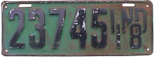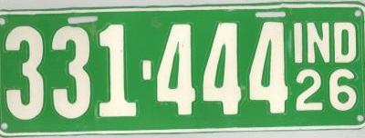 1913-1916: ежегодные знаки выпускались штатом с надписью IND над 1913 (и т.д.) справа (в 1913-м эта часть имела инверсные цвета).