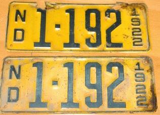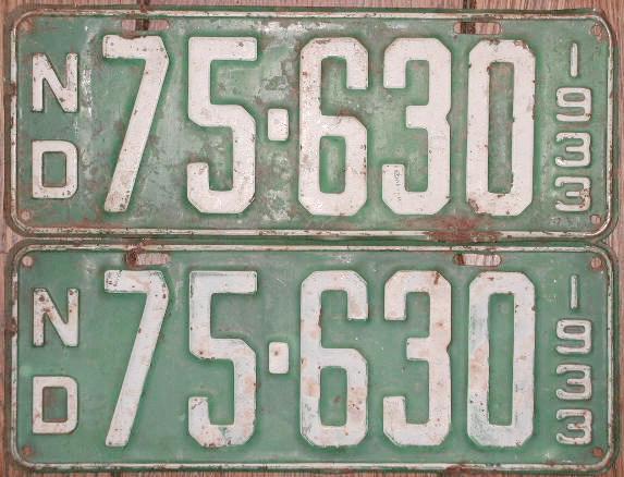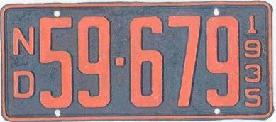 1911-1947: ежегодные выпуски знаков штатом в различных сочетаниях цветов, серийный номер с ND вертикально слева, год полностью вертикально справа. В 1943-м только вновь регистрируемые получали жёлтые на красном знаки + наклейку на ветровое стекло, остальным выдавали только наклейку на ветровое стекло, оставляя знаки 1942 года. Цвета наклейки - чёрные на жёлтом и белом. В 1944-1947 годах выдавался только один знак - задний. В 1911-1971 годах период действия годового знака с 1 января по 31 декабря.