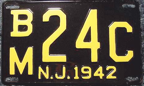 1939 - 1945: намного более короткие знаки с двумя буквами одна над другой, обозначающими округ (см. таблицу внизу), за которыми следовал трёхзначный буквенно-цифровой серийный номер. NJ 39 и NJ 40 вертикально справа, N.J.41 и N.J.44 внизу, в остальных случаях N.J.1942 (и т.д.) внизу.