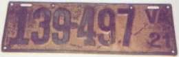 | 1921, старший известный номер, автомобили - 145-524, дилеры - D1-564, мотоциклы - 1986. автомобили - 25-078, 91-617, 139-497, обратная сторона. |