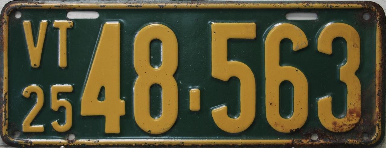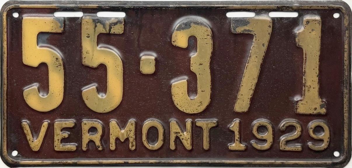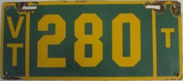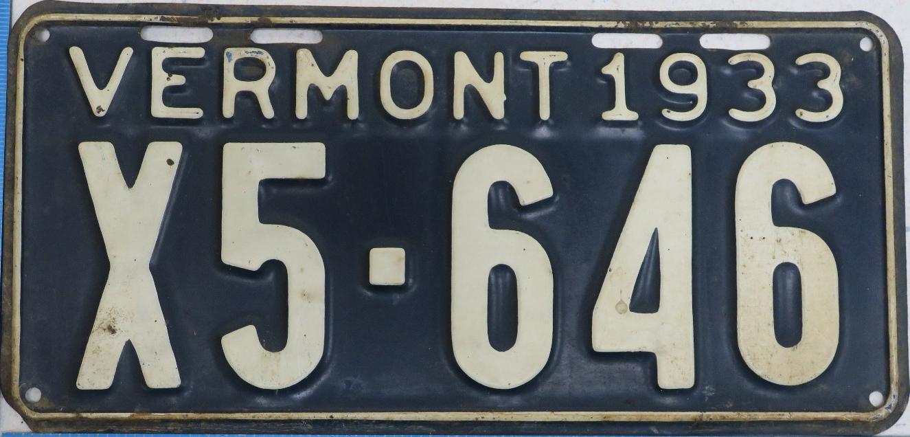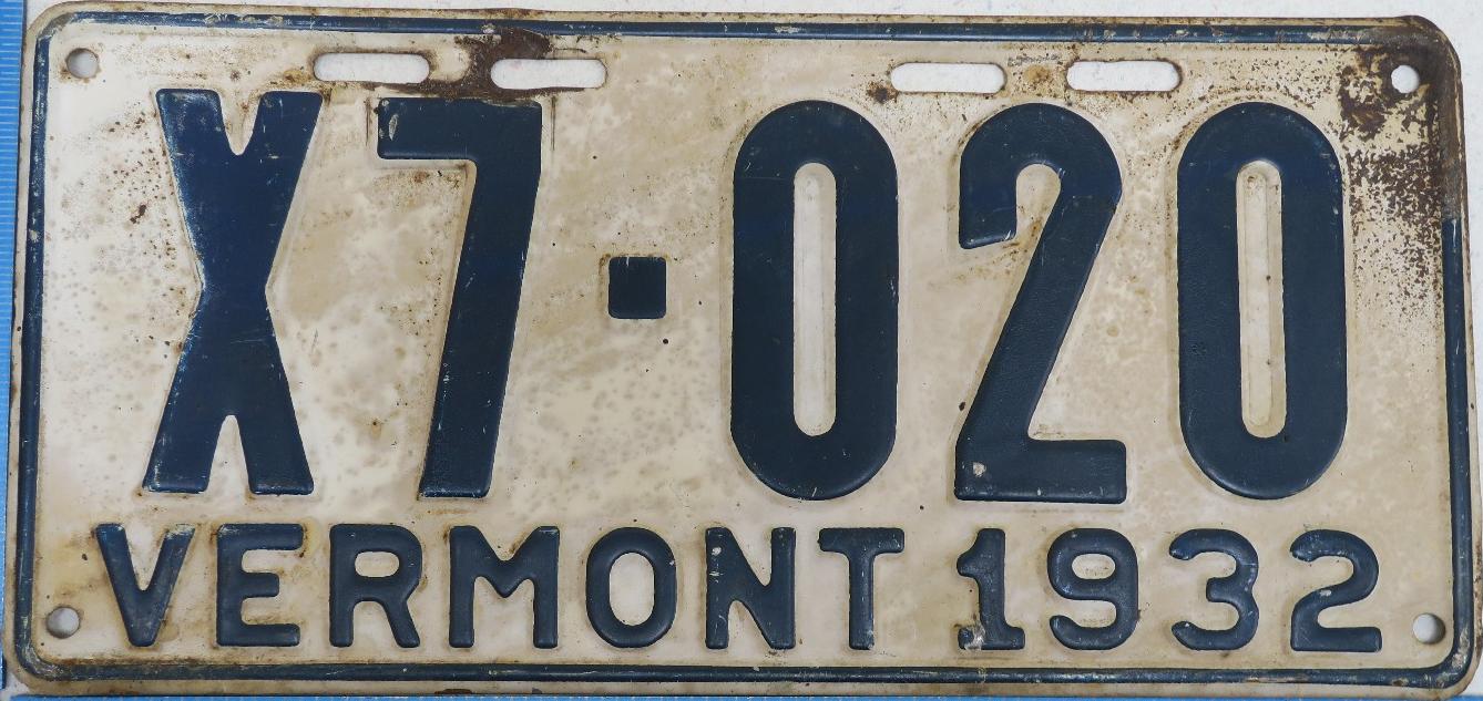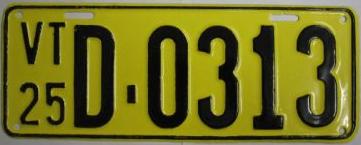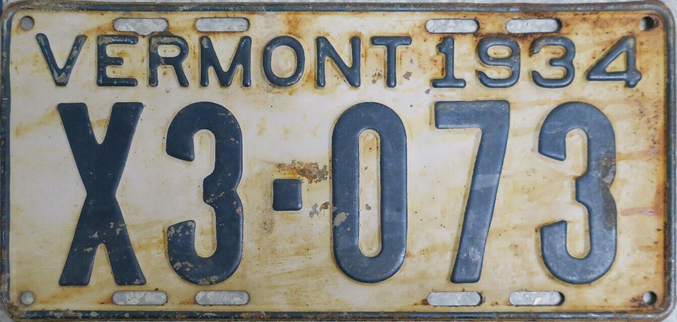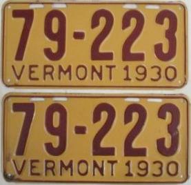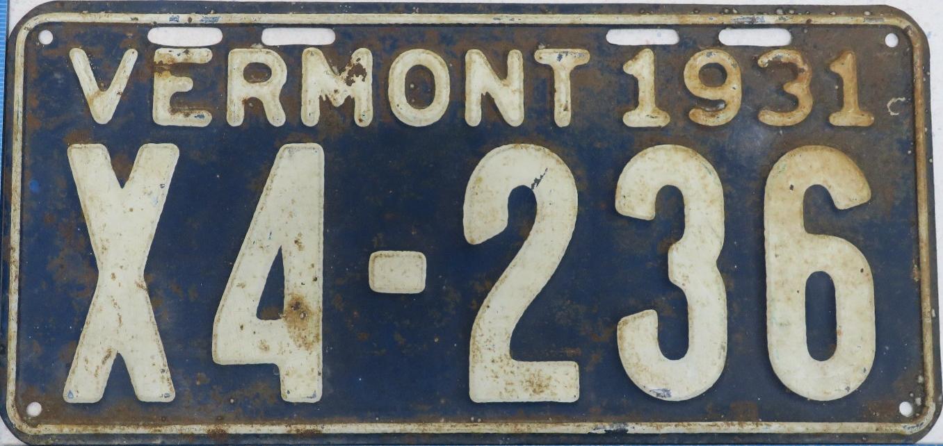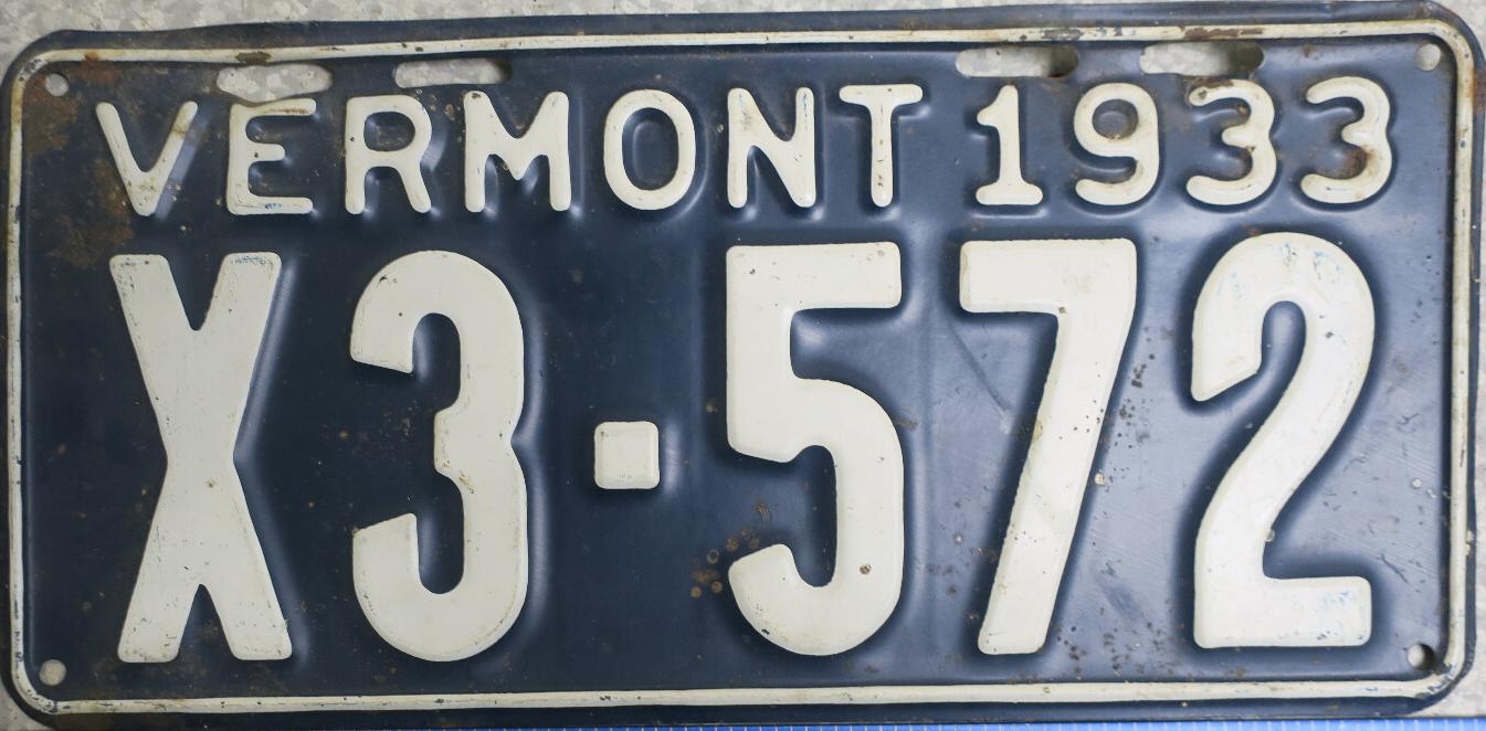 | 1935, у большинства знаков VERMONT с круглой O, но на некоторых она угловатая (см. X5-788), старший известный номер, легковые - 101 ... 72-232, грузовики - X9-546, ремонтники - RP-636, специальные - 194, прицепы - T-1063, мотоциклы - 498. Действие знаков 1935 года продлено до 31 III 1936. легковые - 179, 1-860, 39-892, 42-083, 59-496, обратная сторона. грузовики - X5-788, обратная сторона. образец знака для отделений дорожной полиции - 00-000, обратная сторона. мотоциклы - 402, 489, обратная сторона. |