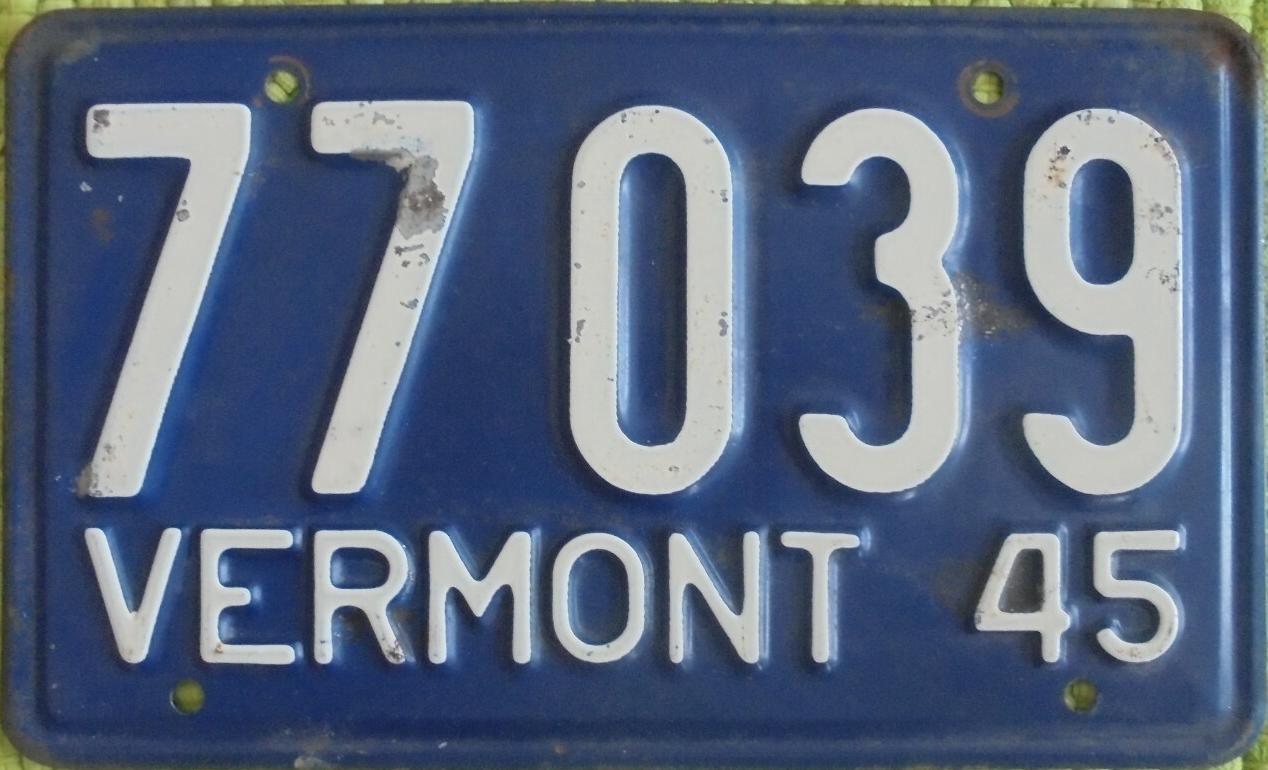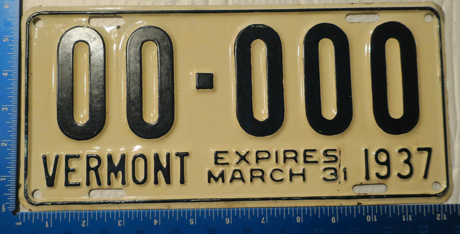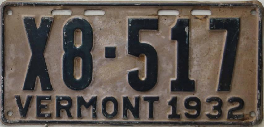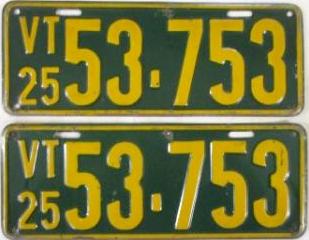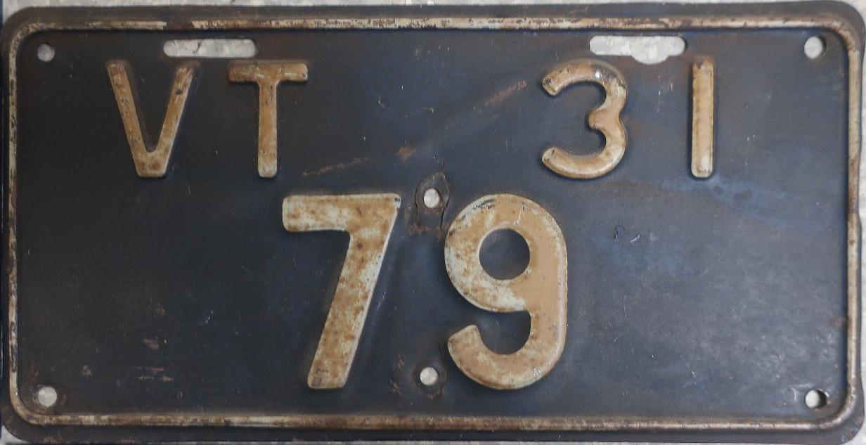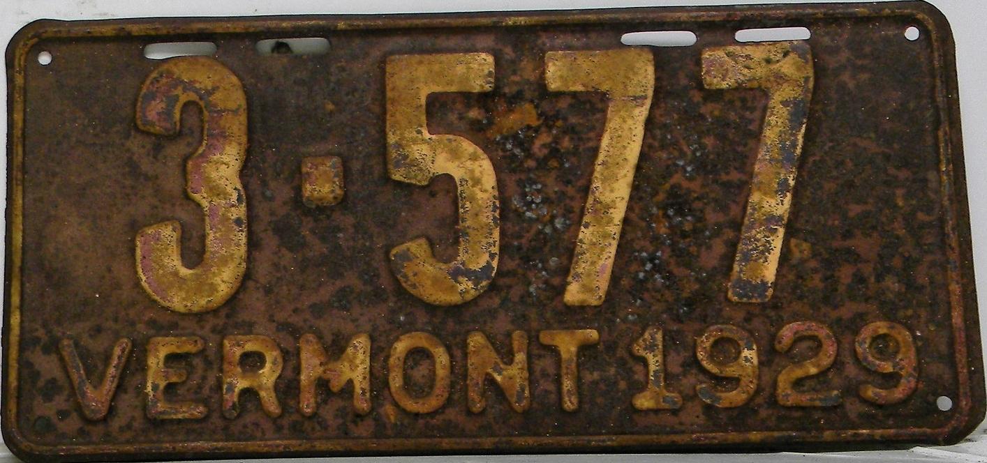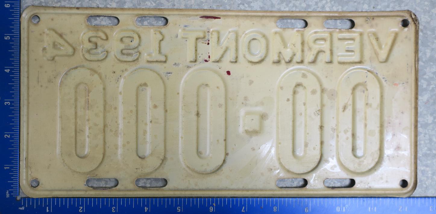 | 1935, у большинства знаков VERMONT с круглой O, но на некоторых она угловатая (см. X5-788), старший известный номер, легковые - 101 ... 72-232, грузовики - X9-546, ремонтники - RP-636, специальные - 194, прицепы - T-1063, мотоциклы - 498. Действие знаков 1935 года продлено до 31 III 1936. легковые - 179, 1-860, 39-892, 42-083, 59-496, обратная сторона. грузовики - X5-788, обратная сторона. образец знака для отделений дорожной полиции - 00-000, обратная сторона. мотоциклы - 402, 489, обратная сторона. |