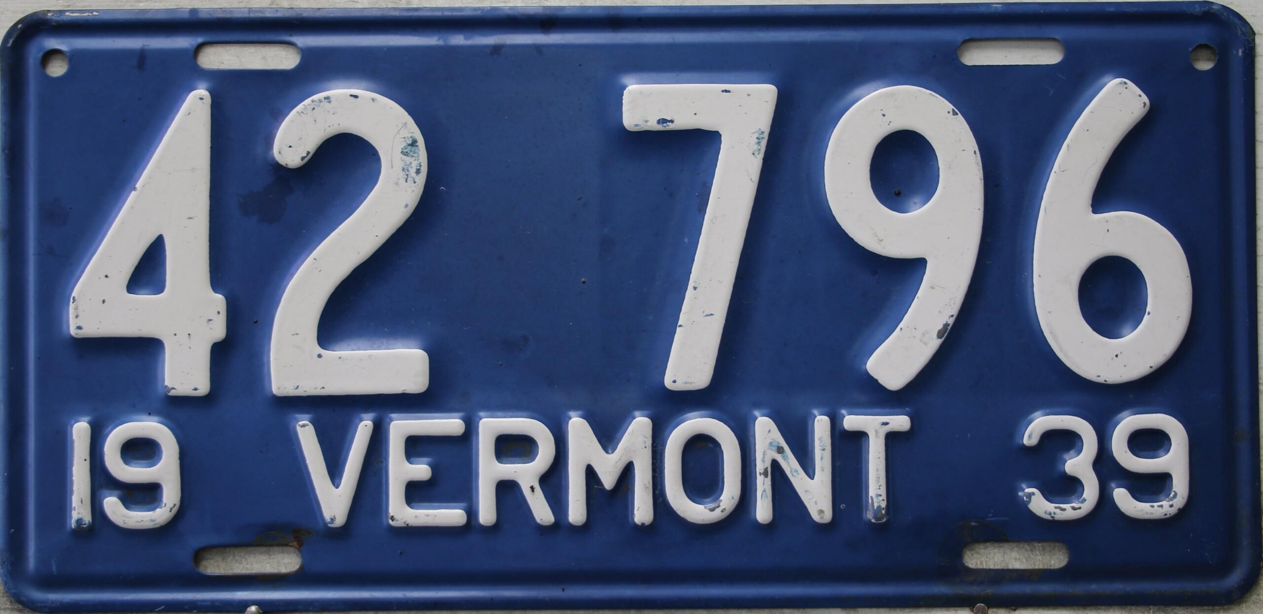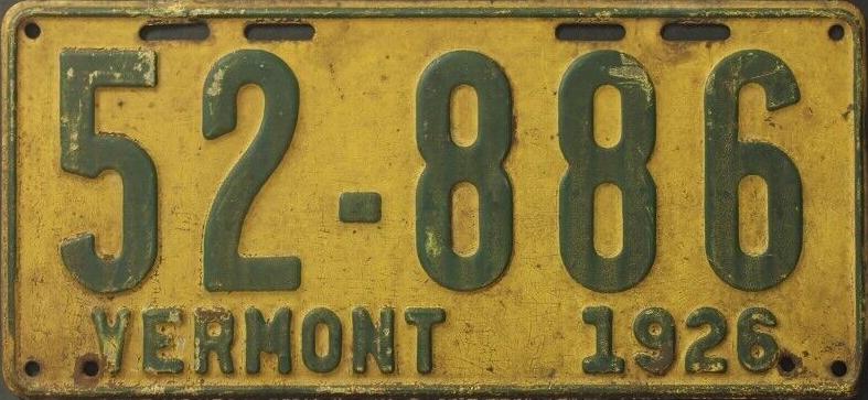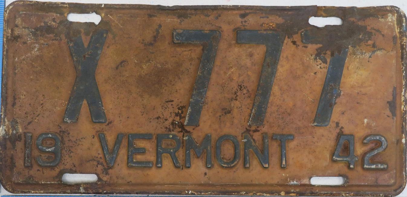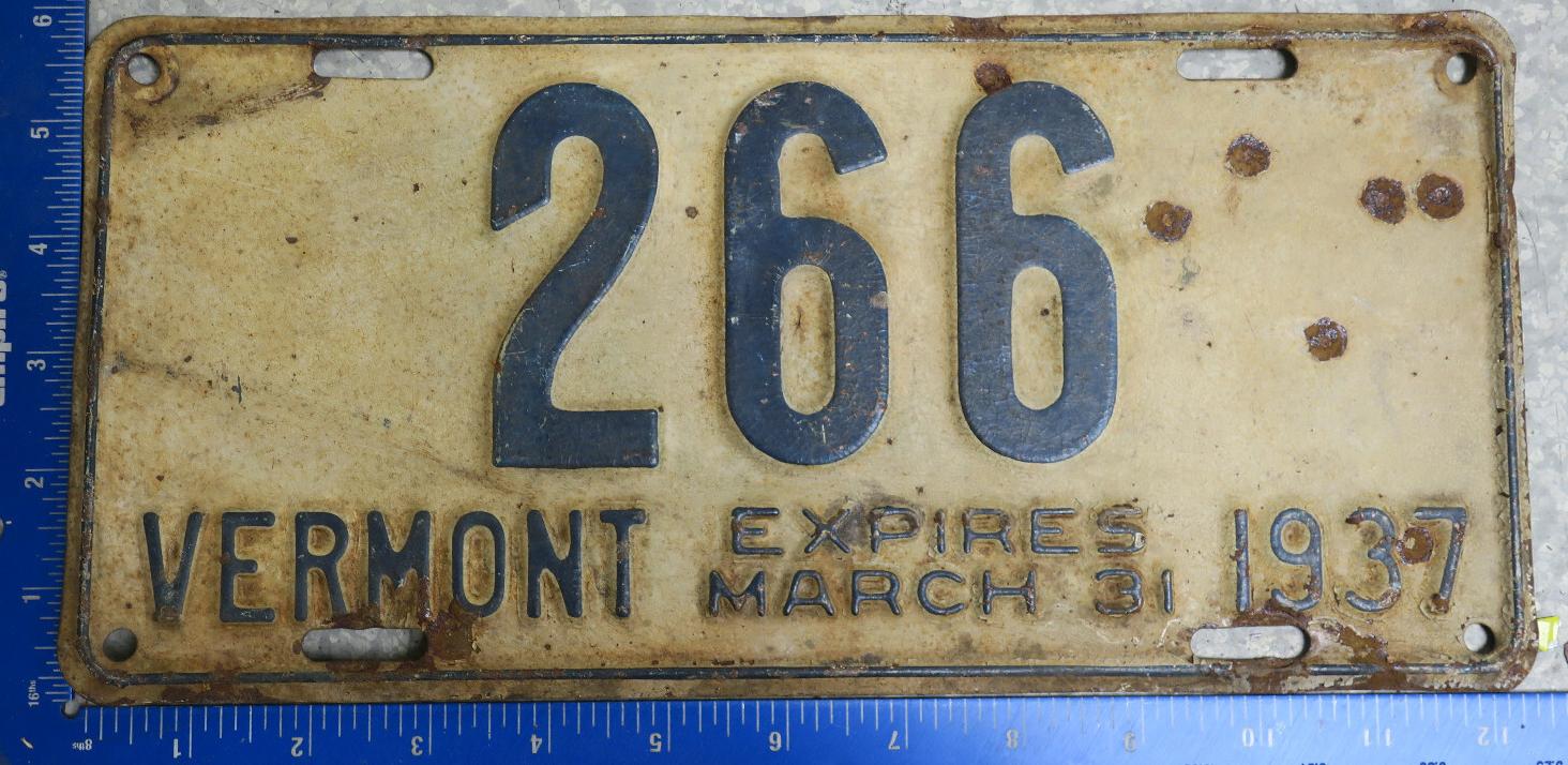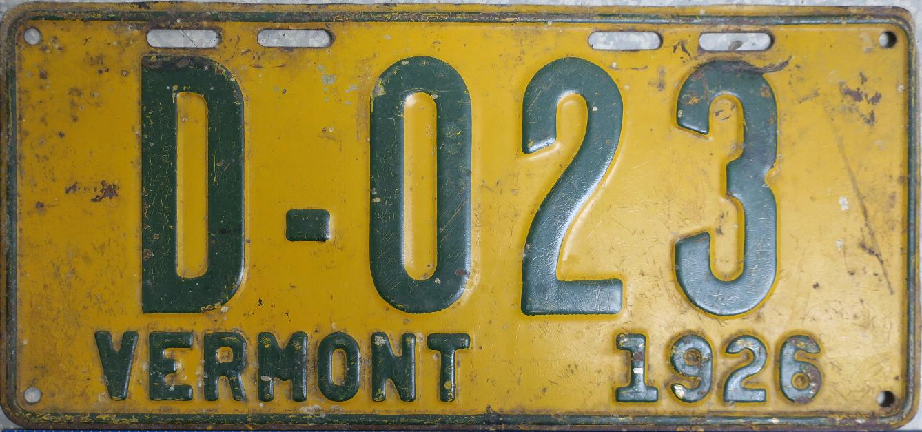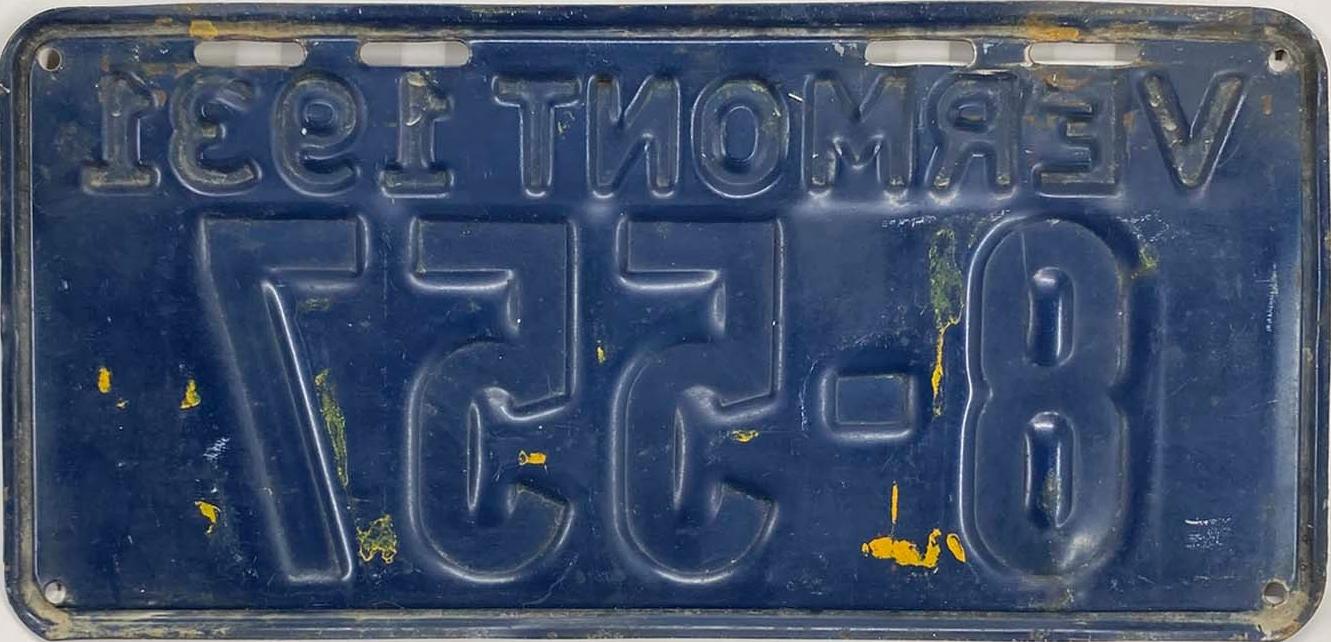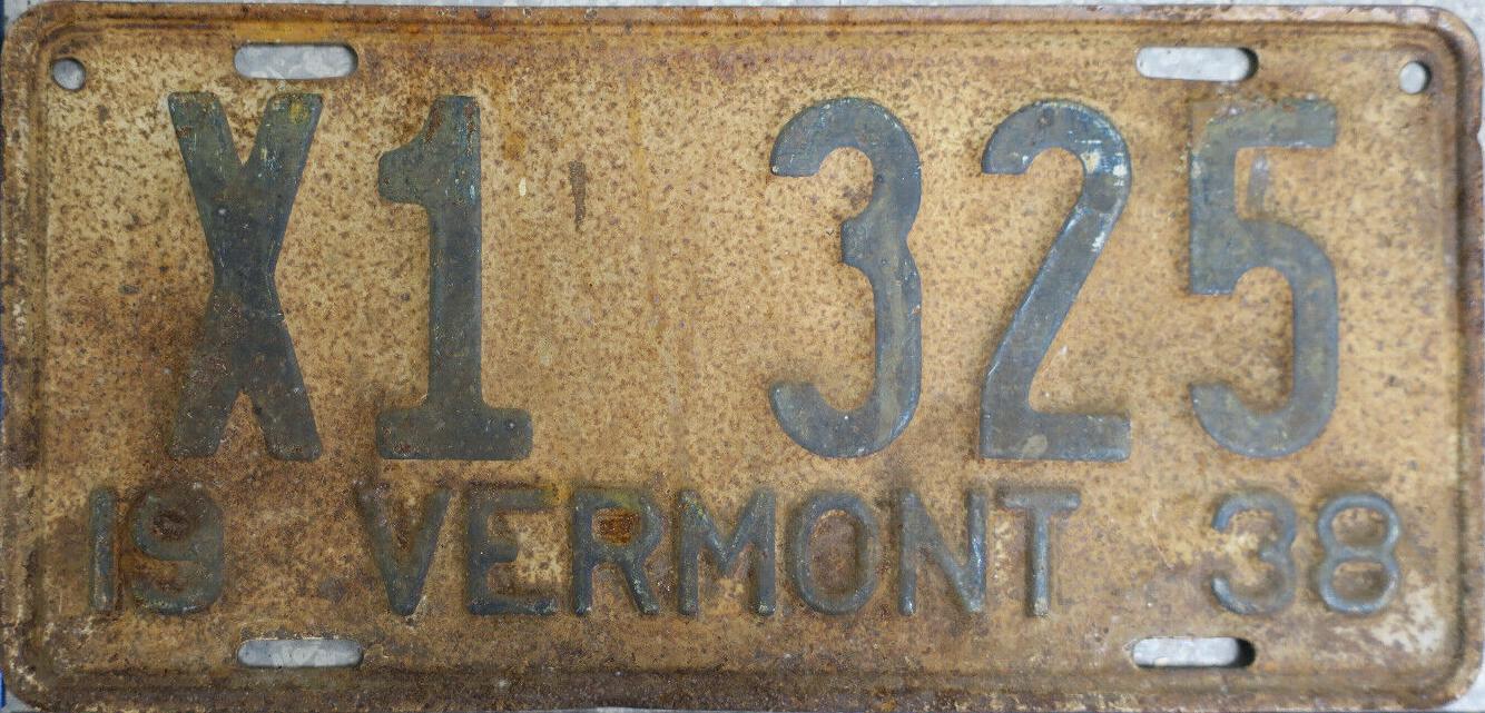 | 1935, у большинства знаков VERMONT с круглой O, но на некоторых она угловатая (см. X5-788), старший известный номер, легковые - 101 ... 72-232, грузовики - X9-546, ремонтники - RP-636, специальные - 194, прицепы - T-1063, мотоциклы - 498. Действие знаков 1935 года продлено до 31 III 1936. легковые - 179, 1-860, 39-892, 42-083, 59-496, обратная сторона. грузовики - X5-788, обратная сторона. образец знака для отделений дорожной полиции - 00-000, обратная сторона. мотоциклы - 402, 489, обратная сторона. |
