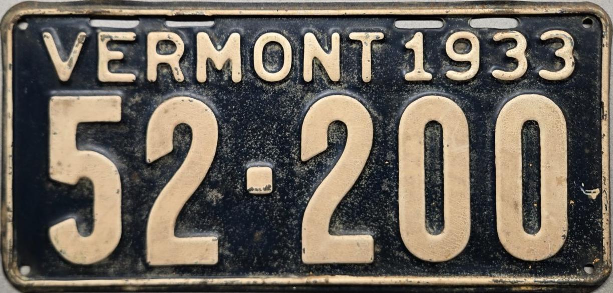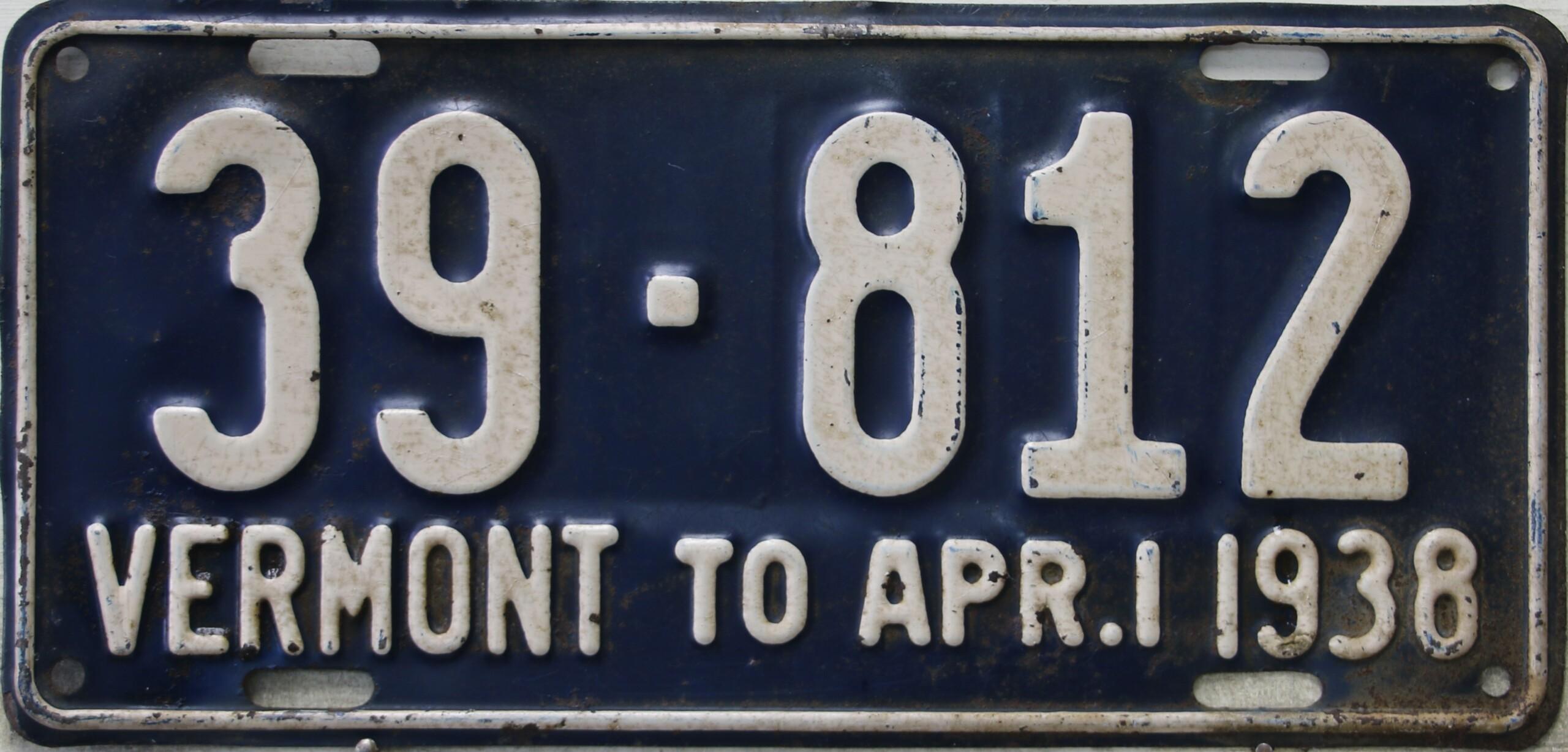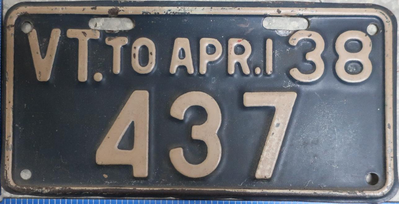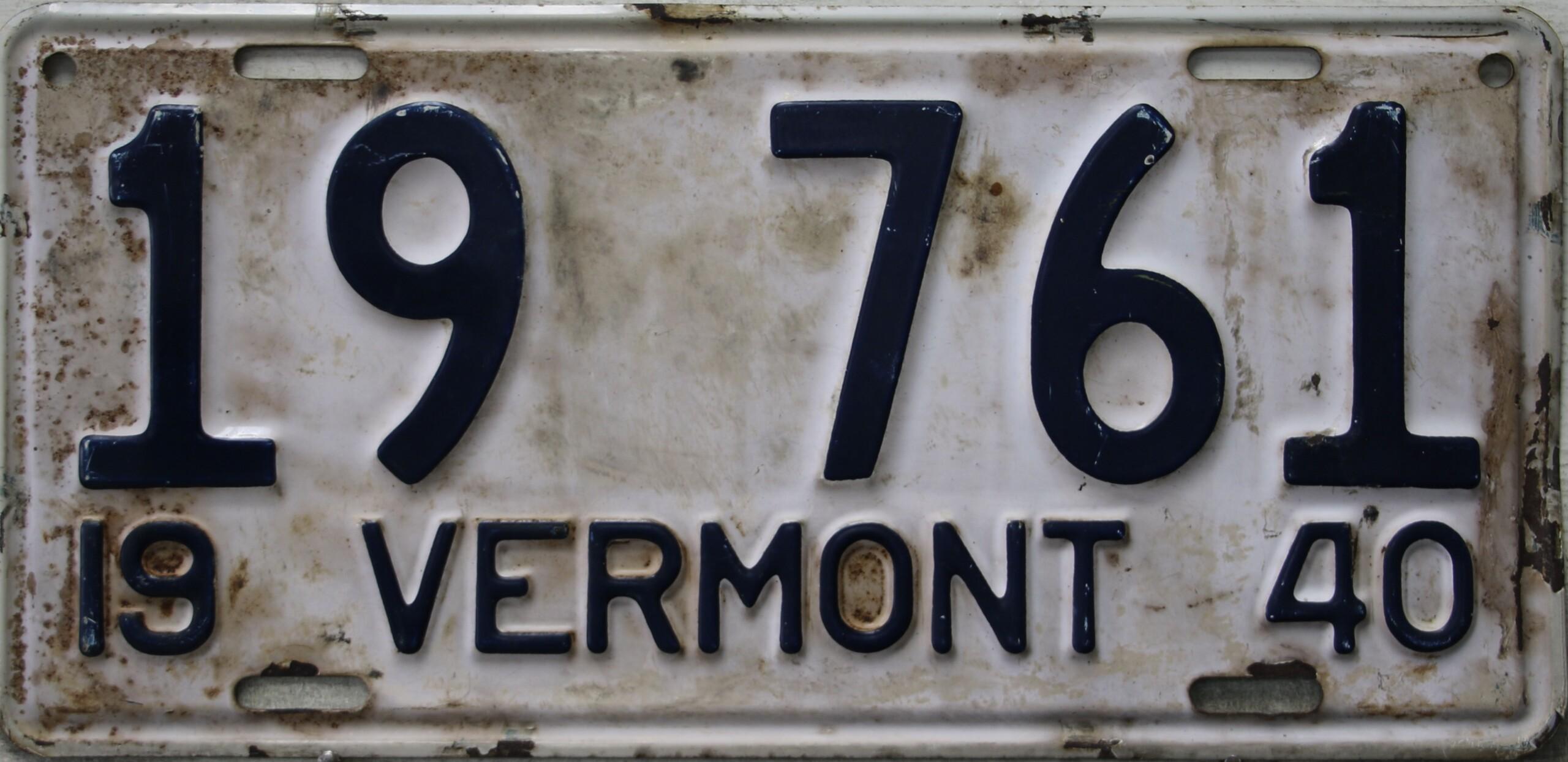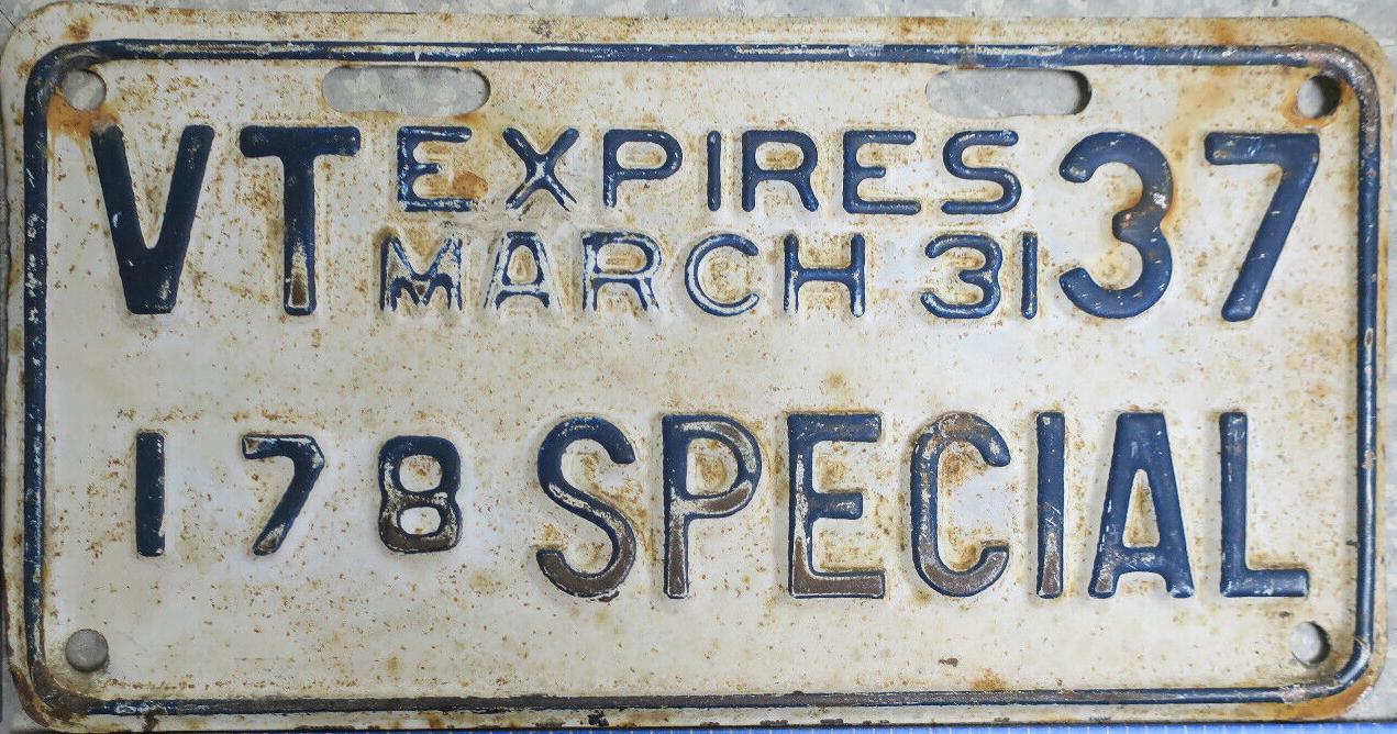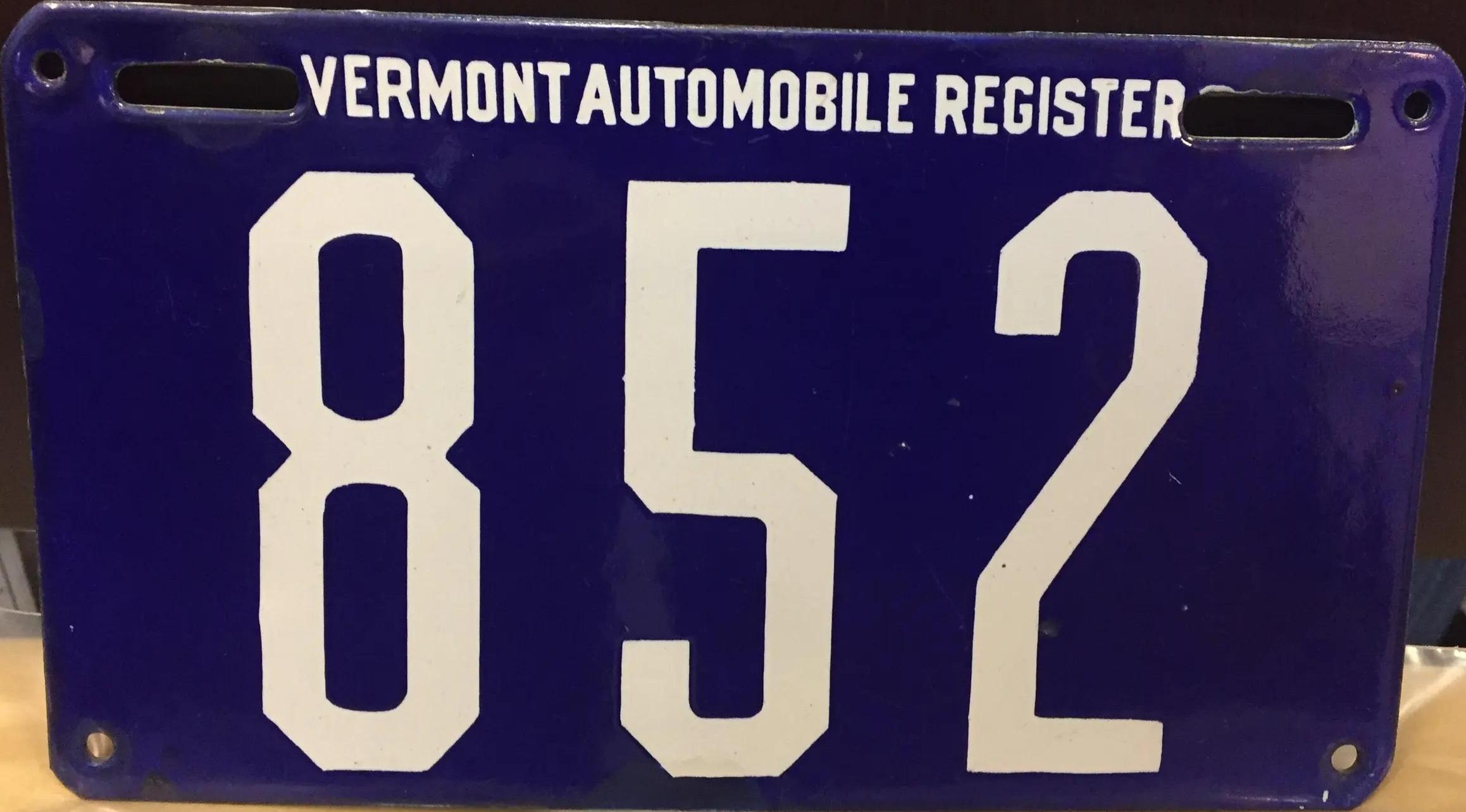 | 1935, у большинства знаков VERMONT с круглой O, но на некоторых она угловатая (см. X5-788), старший известный номер, легковые - 101 ... 72-232, грузовики - X9-546, ремонтники - RP-636, специальные - 194, прицепы - T-1063, мотоциклы - 498. Действие знаков 1935 года продлено до 31 III 1936. легковые - 179, 1-860, 39-892, 42-083, 59-496, обратная сторона. грузовики - X5-788, обратная сторона. образец знака для отделений дорожной полиции - 00-000, обратная сторона. мотоциклы - 402, 489, обратная сторона. |