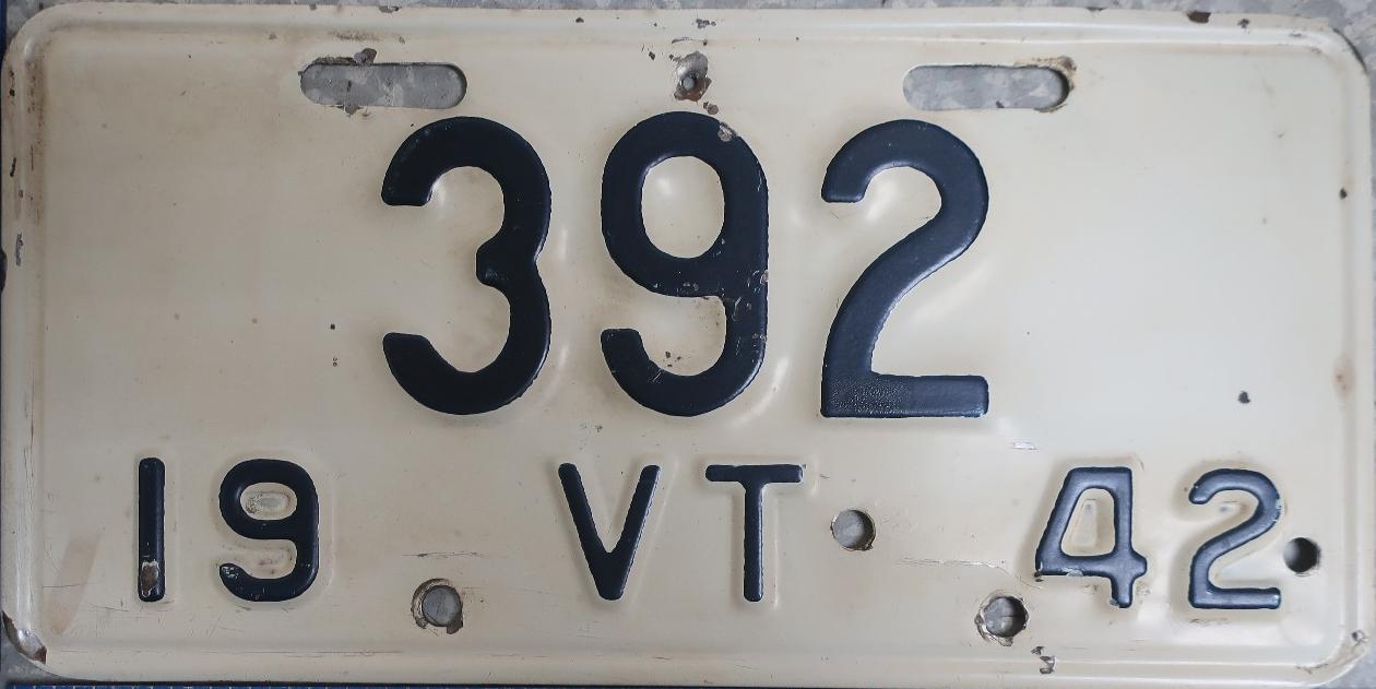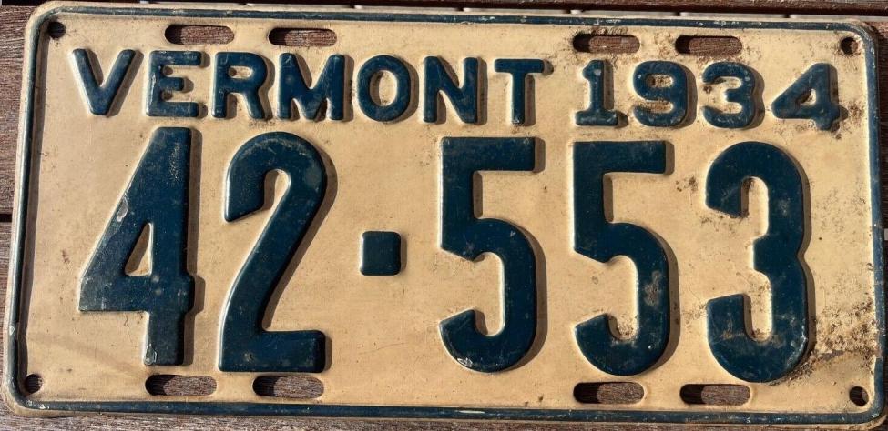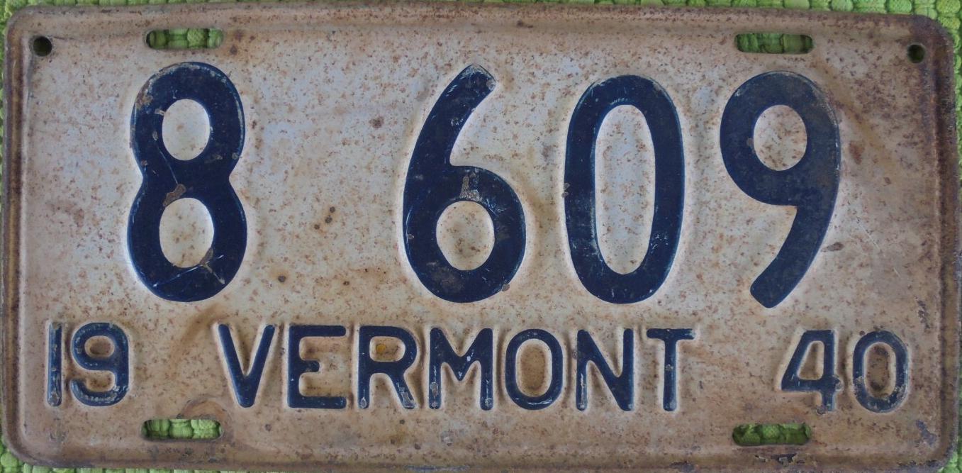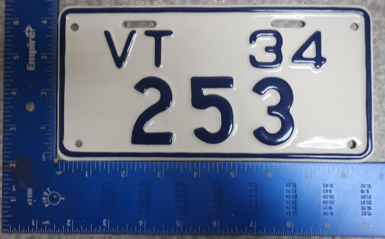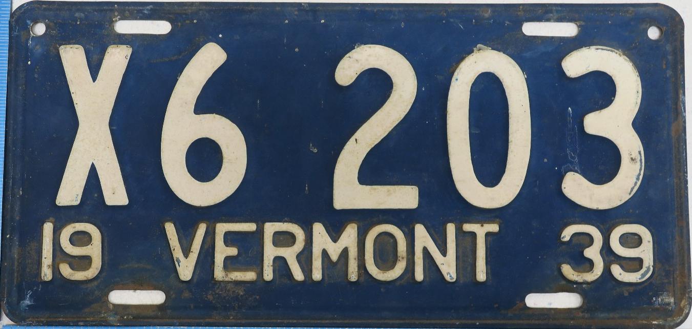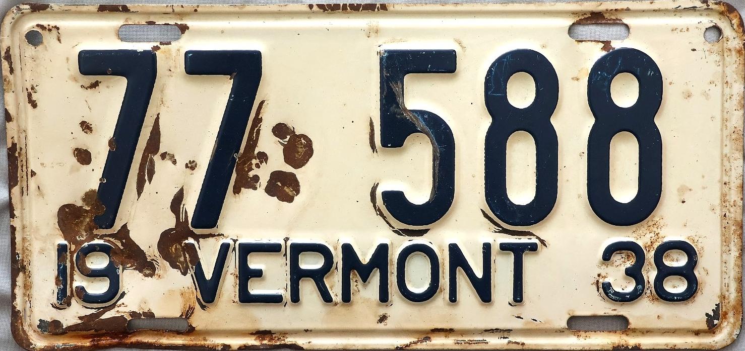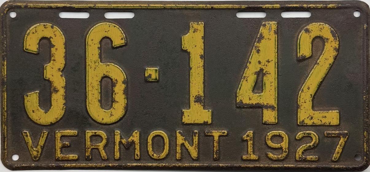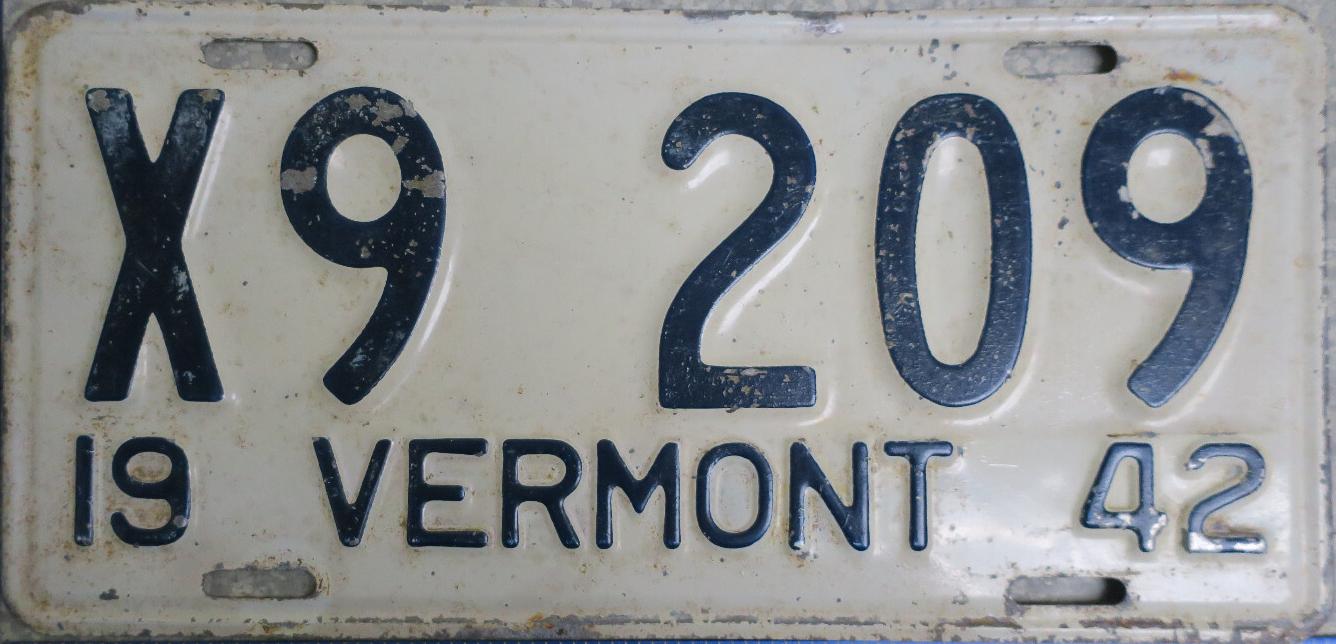 | 1935, у большинства знаков VERMONT с круглой O, но на некоторых она угловатая (см. X5-788), старший известный номер, легковые - 101 ... 72-232, грузовики - X9-546, ремонтники - RP-636, специальные - 194, прицепы - T-1063, мотоциклы - 498. Действие знаков 1935 года продлено до 31 III 1936. легковые - 179, 1-860, 39-892, 42-083, 59-496, обратная сторона. грузовики - X5-788, обратная сторона. образец знака для отделений дорожной полиции - 00-000, обратная сторона. мотоциклы - 402, 489, обратная сторона. |