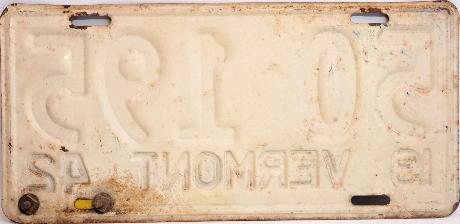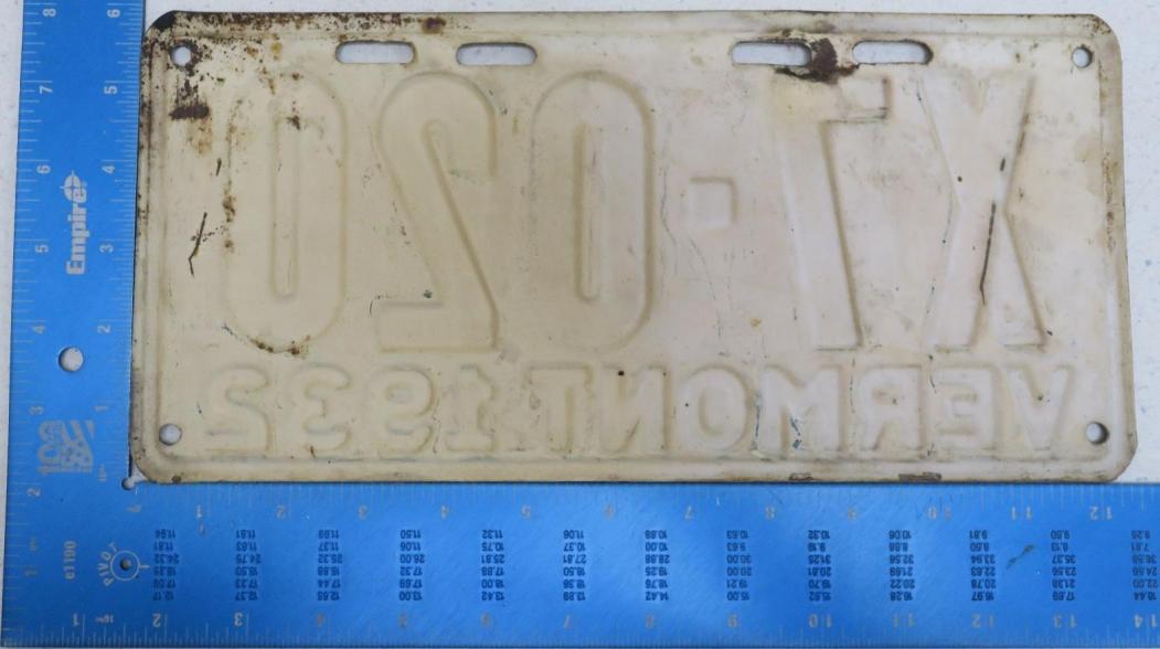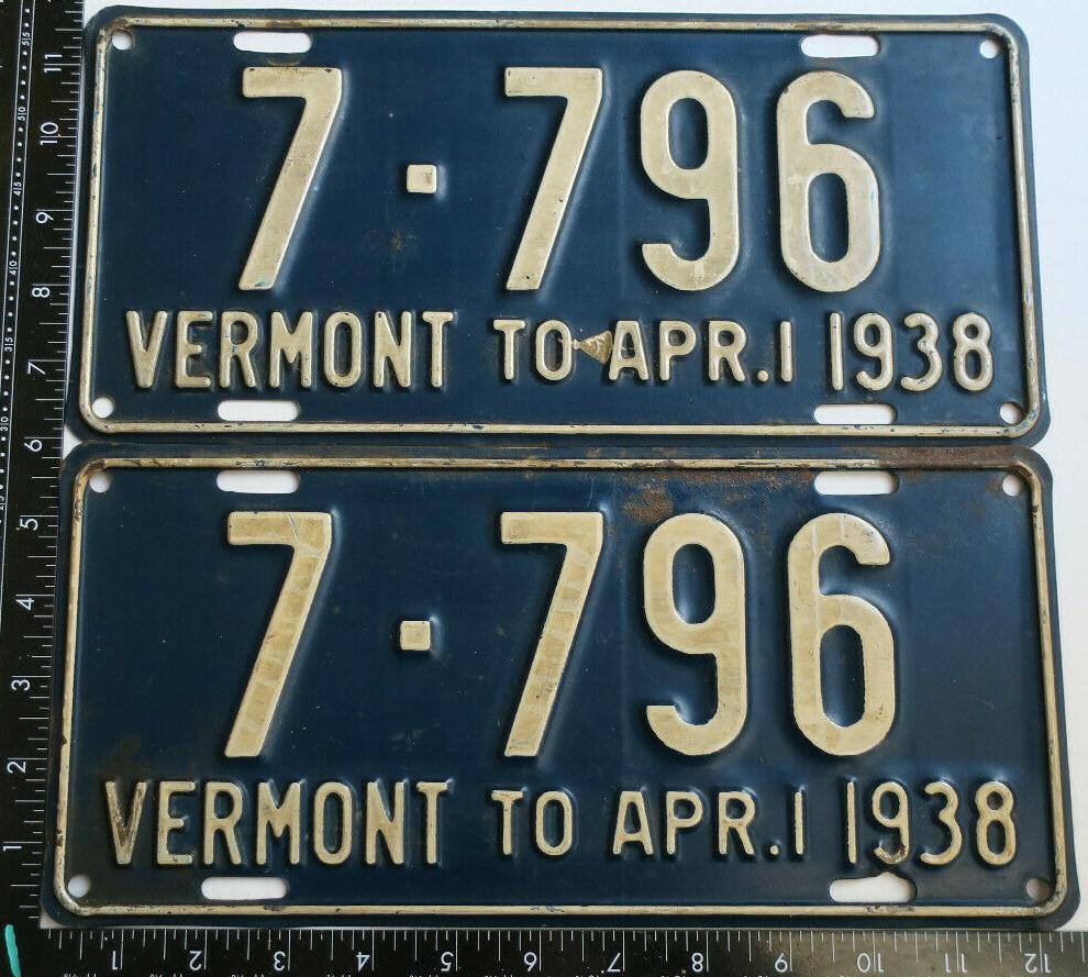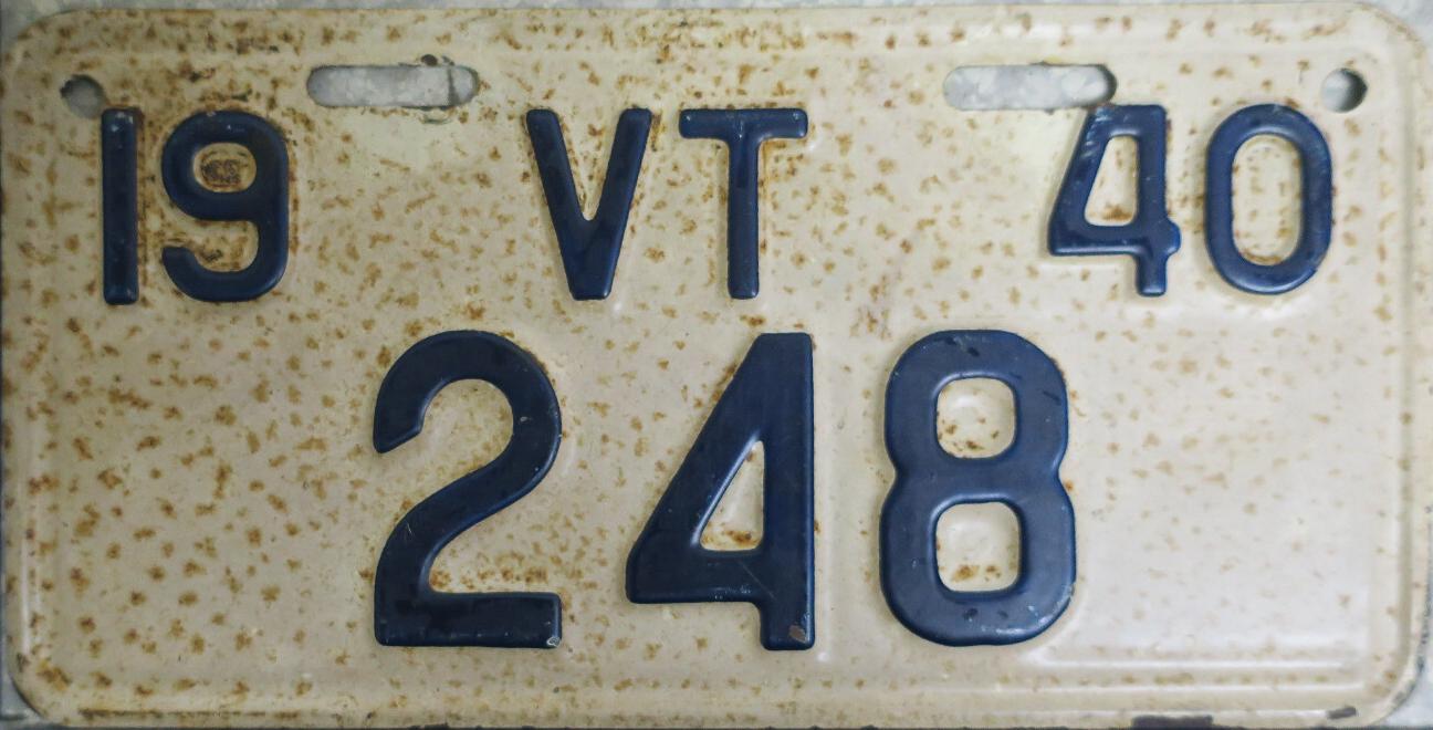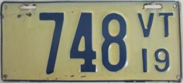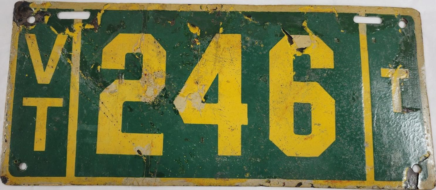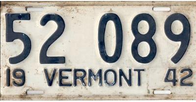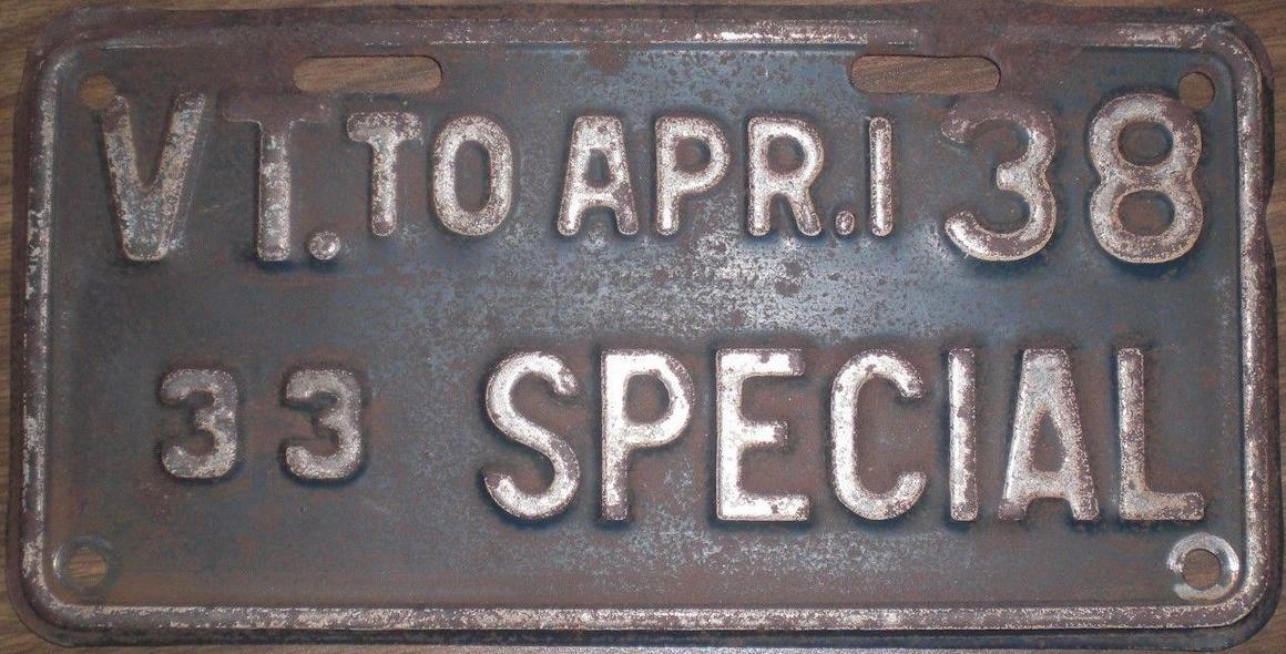 | 1935, у большинства знаков VERMONT с круглой O, но на некоторых она угловатая (см. X5-788), старший известный номер, легковые - 101 ... 72-232, грузовики - X9-546, ремонтники - RP-636, специальные - 194, прицепы - T-1063, мотоциклы - 498. Действие знаков 1935 года продлено до 31 III 1936. легковые - 179, 1-860, 39-892, 42-083, 59-496, обратная сторона. грузовики - X5-788, обратная сторона. образец знака для отделений дорожной полиции - 00-000, обратная сторона. мотоциклы - 402, 489, обратная сторона. |