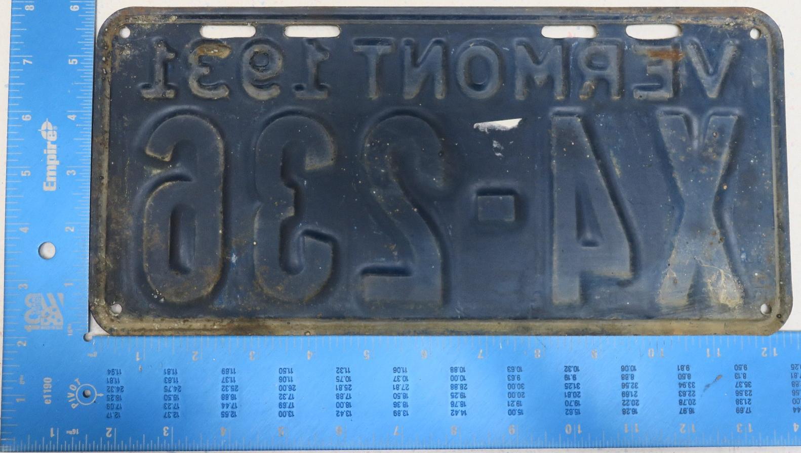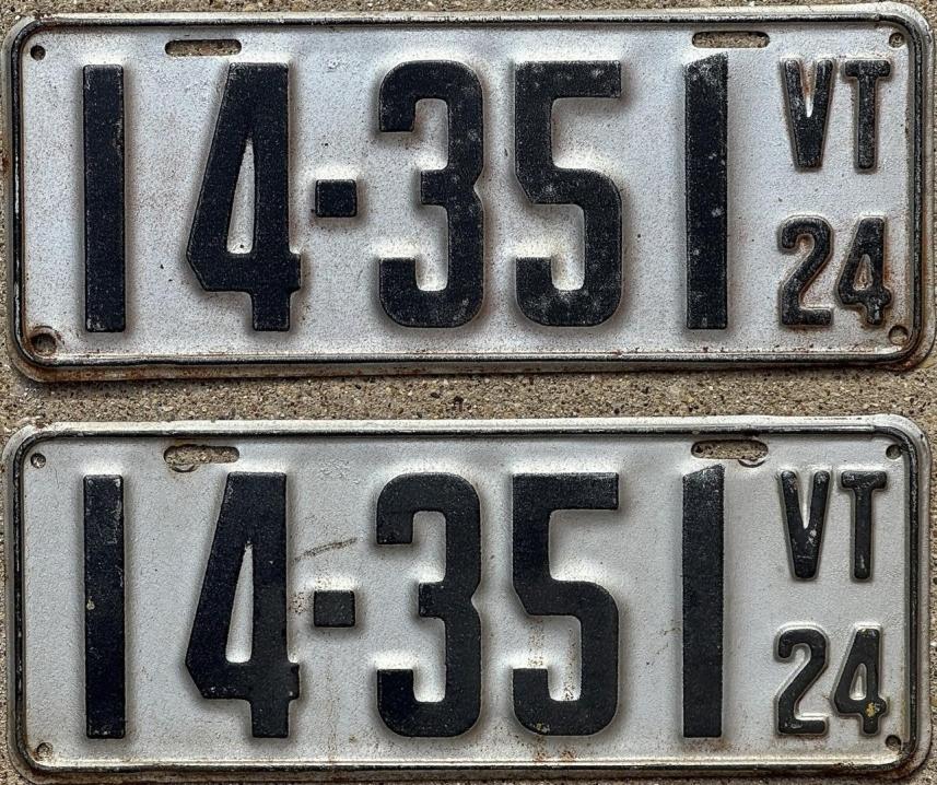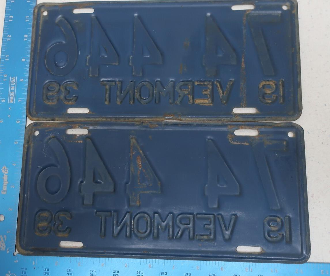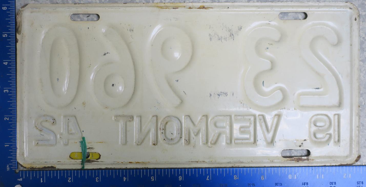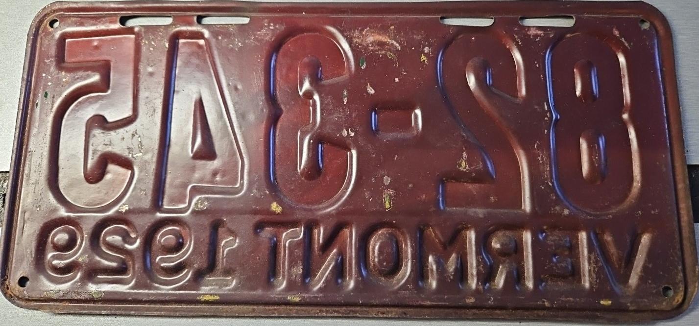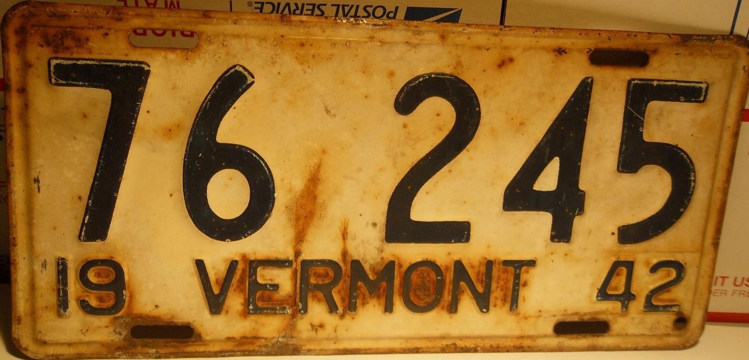 | 1935, у большинства знаков VERMONT с круглой O, но на некоторых она угловатая (см. X5-788), старший известный номер, легковые - 101 ... 72-232, грузовики - X9-546, ремонтники - RP-636, специальные - 194, прицепы - T-1063, мотоциклы - 498. Действие знаков 1935 года продлено до 31 III 1936. легковые - 179, 1-860, 39-892, 42-083, 59-496, обратная сторона. грузовики - X5-788, обратная сторона. образец знака для отделений дорожной полиции - 00-000, обратная сторона. мотоциклы - 402, 489, обратная сторона. |