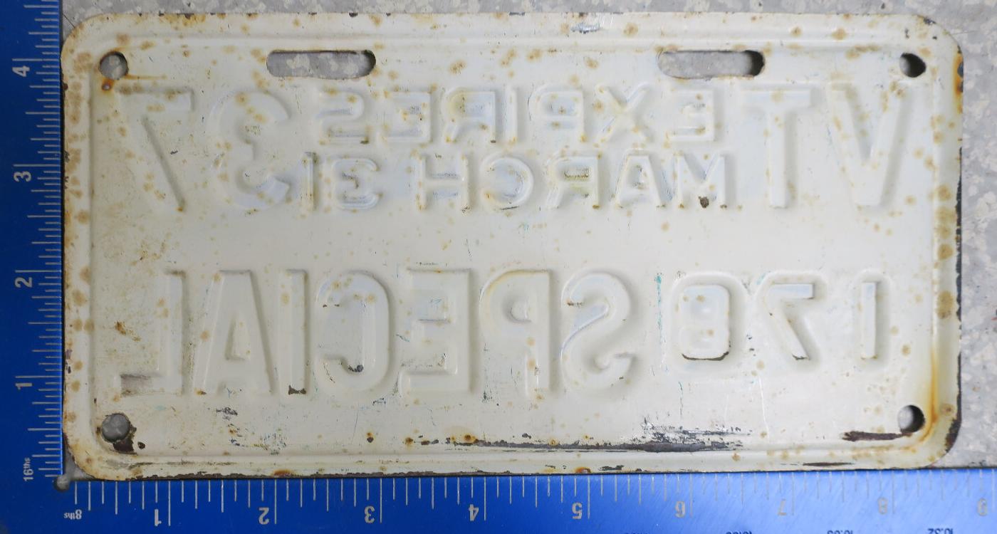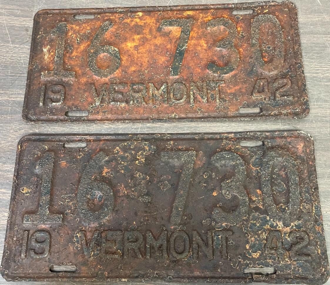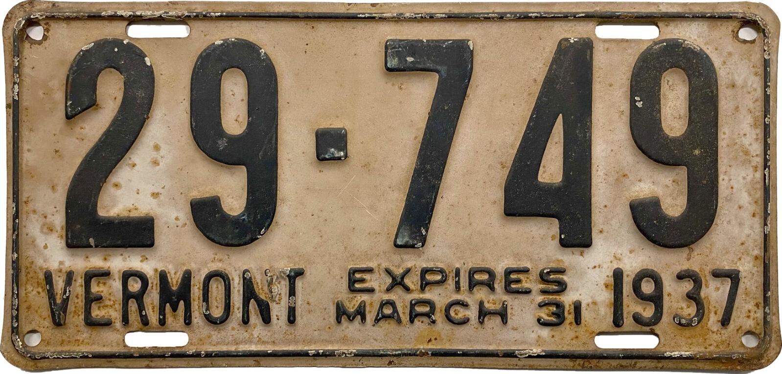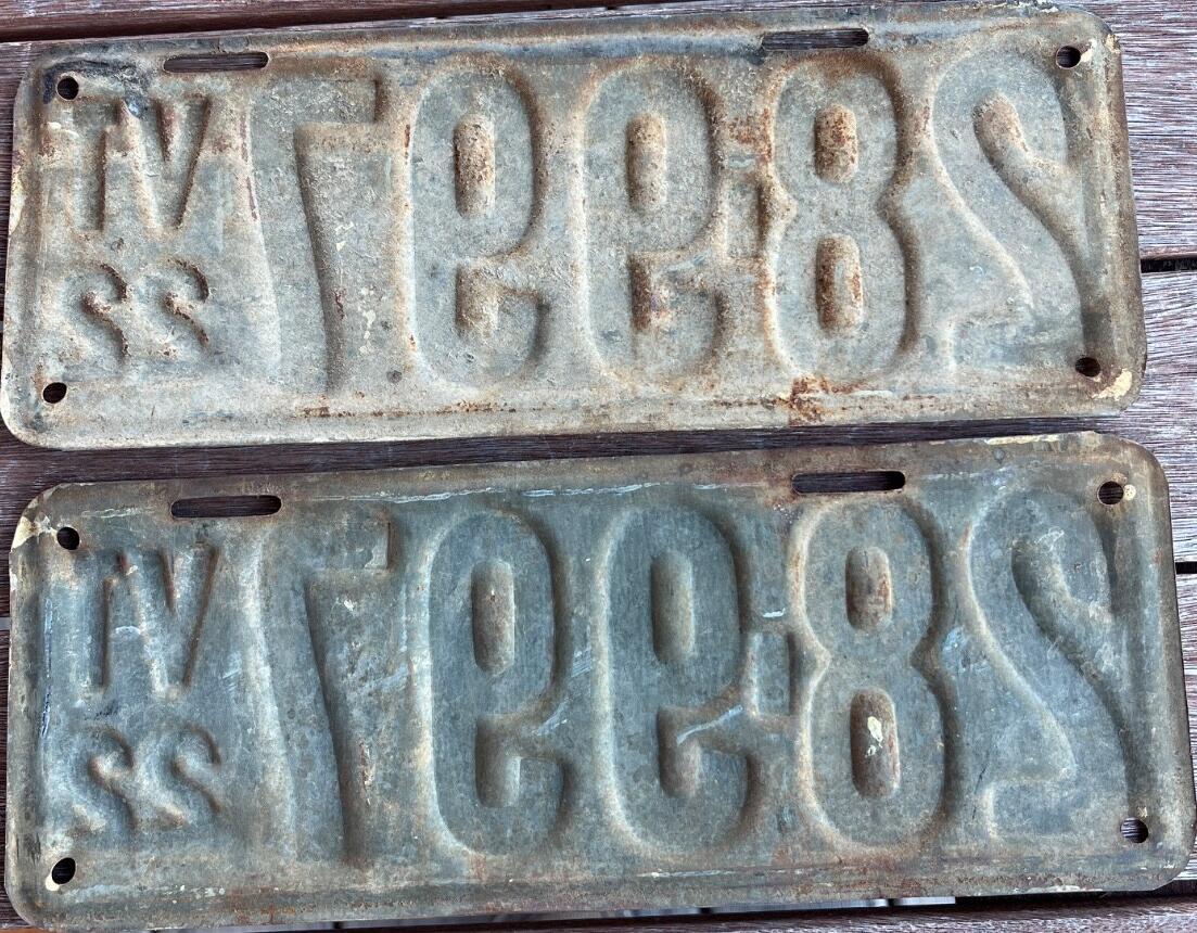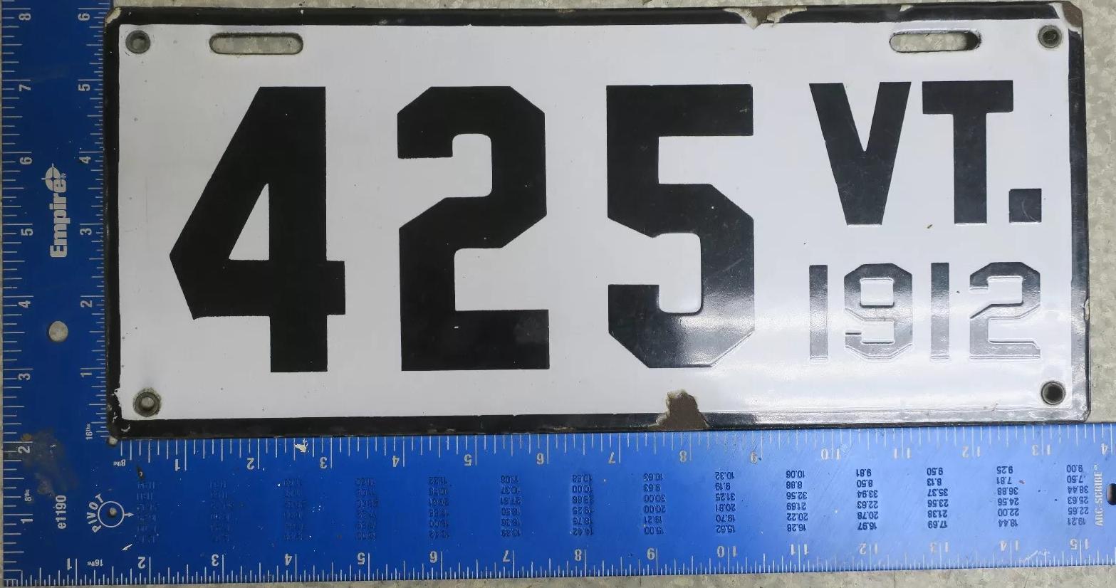 | 1935, у большинства знаков VERMONT с круглой O, но на некоторых она угловатая (см. X5-788), старший известный номер, легковые - 101 ... 72-232, грузовики - X9-546, ремонтники - RP-636, специальные - 194, прицепы - T-1063, мотоциклы - 498. Действие знаков 1935 года продлено до 31 III 1936. легковые - 179, 1-860, 39-892, 42-083, 59-496, обратная сторона. грузовики - X5-788, обратная сторона. образец знака для отделений дорожной полиции - 00-000, обратная сторона. мотоциклы - 402, 489, обратная сторона. |