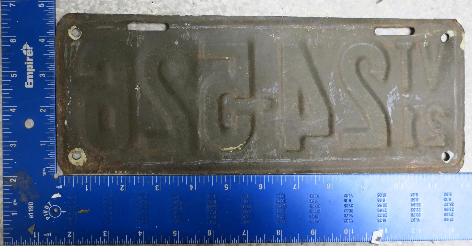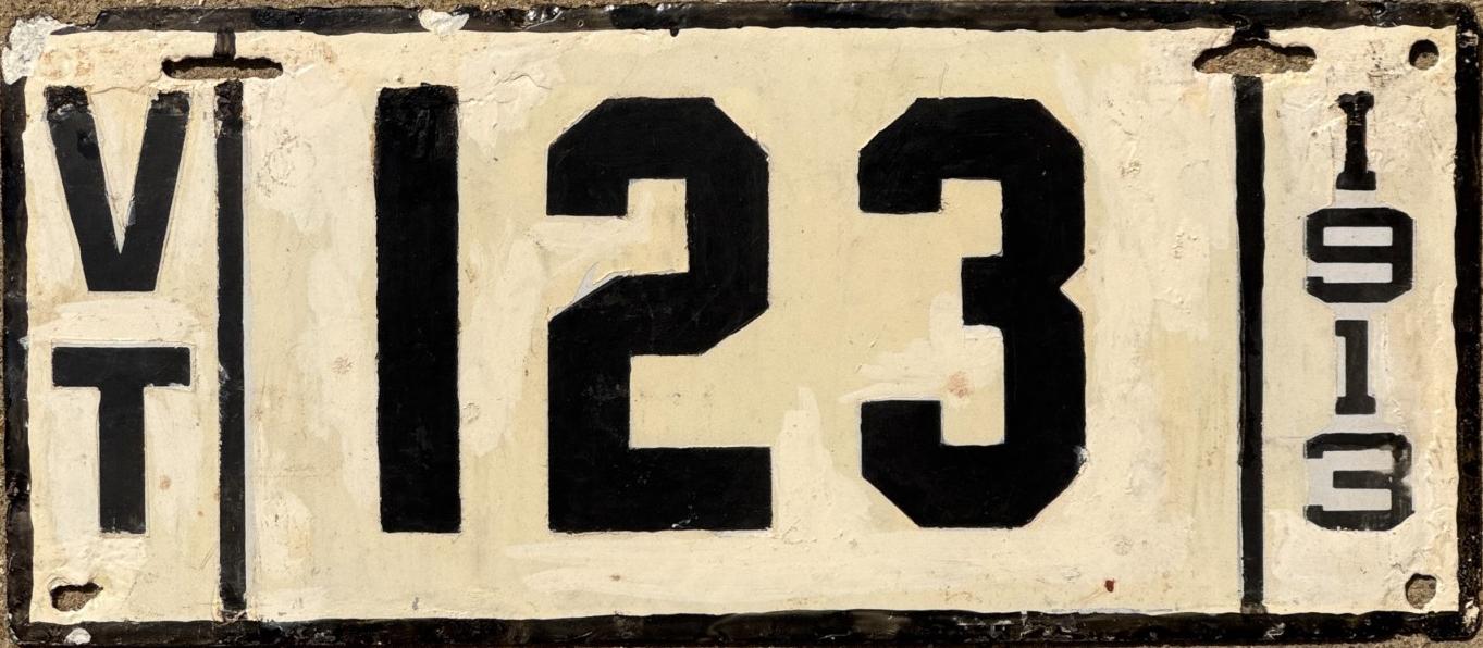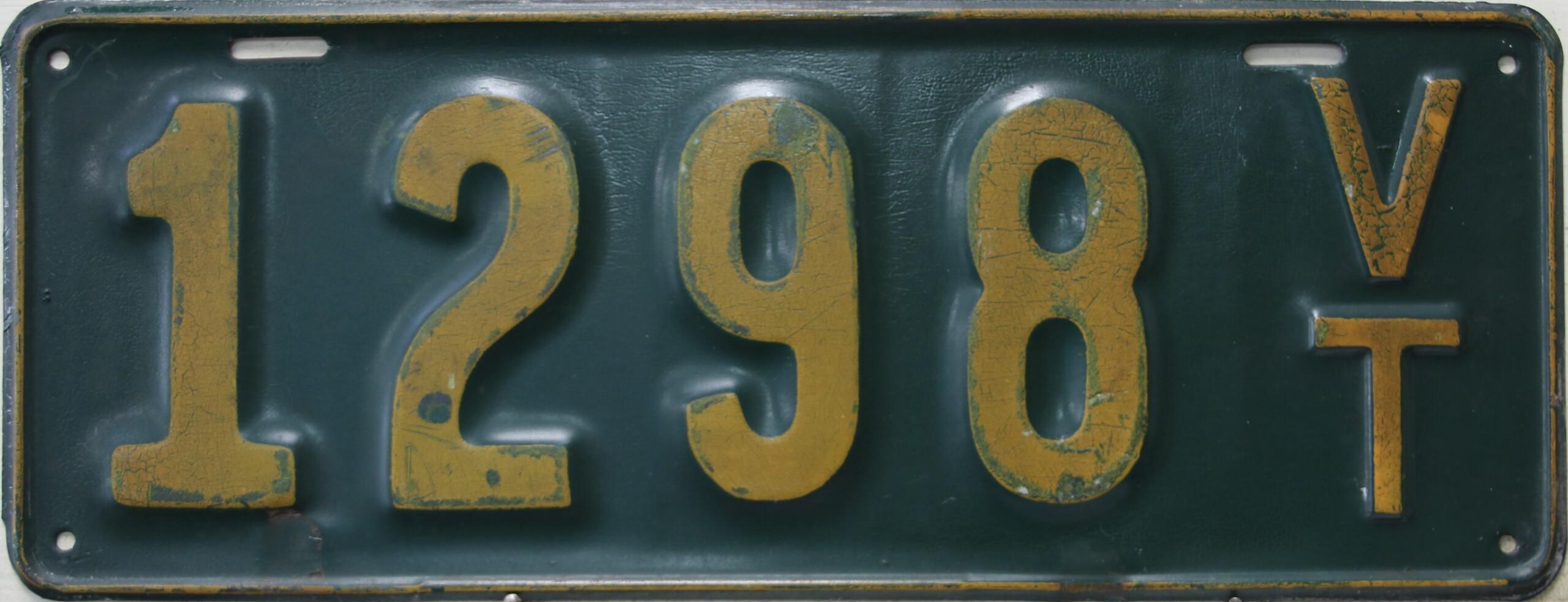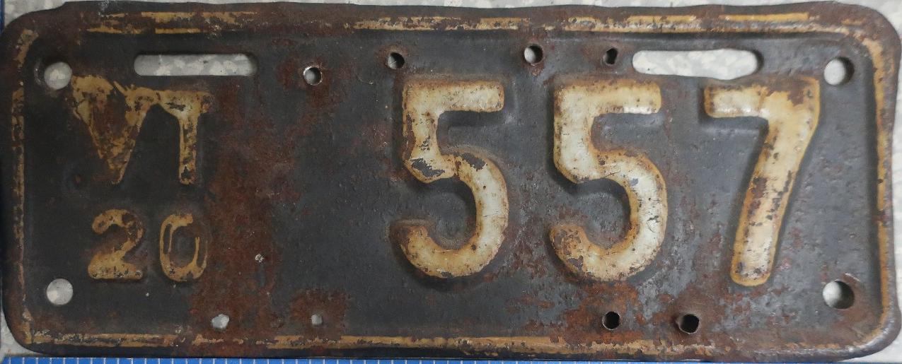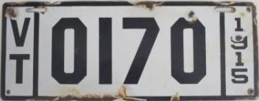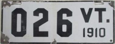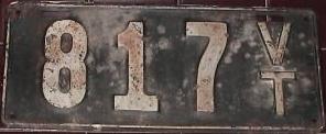| 1917, старший известный номер, автомобили - 20289, мотоциклы - 700, временные - T259 ... T1407. У автомобильных знаков 1 ... 16556 и 16992 ... 17703 угловатый шрифт 1917 года, у знаков 16694 ... 16702 и 18158 ... - округлый шрифт 1918 года. автомобили - 5075, 9849, 11028, 12906, 13236, 15101, 16702, 16992, 17592, обратная сторона. временные - T259. |