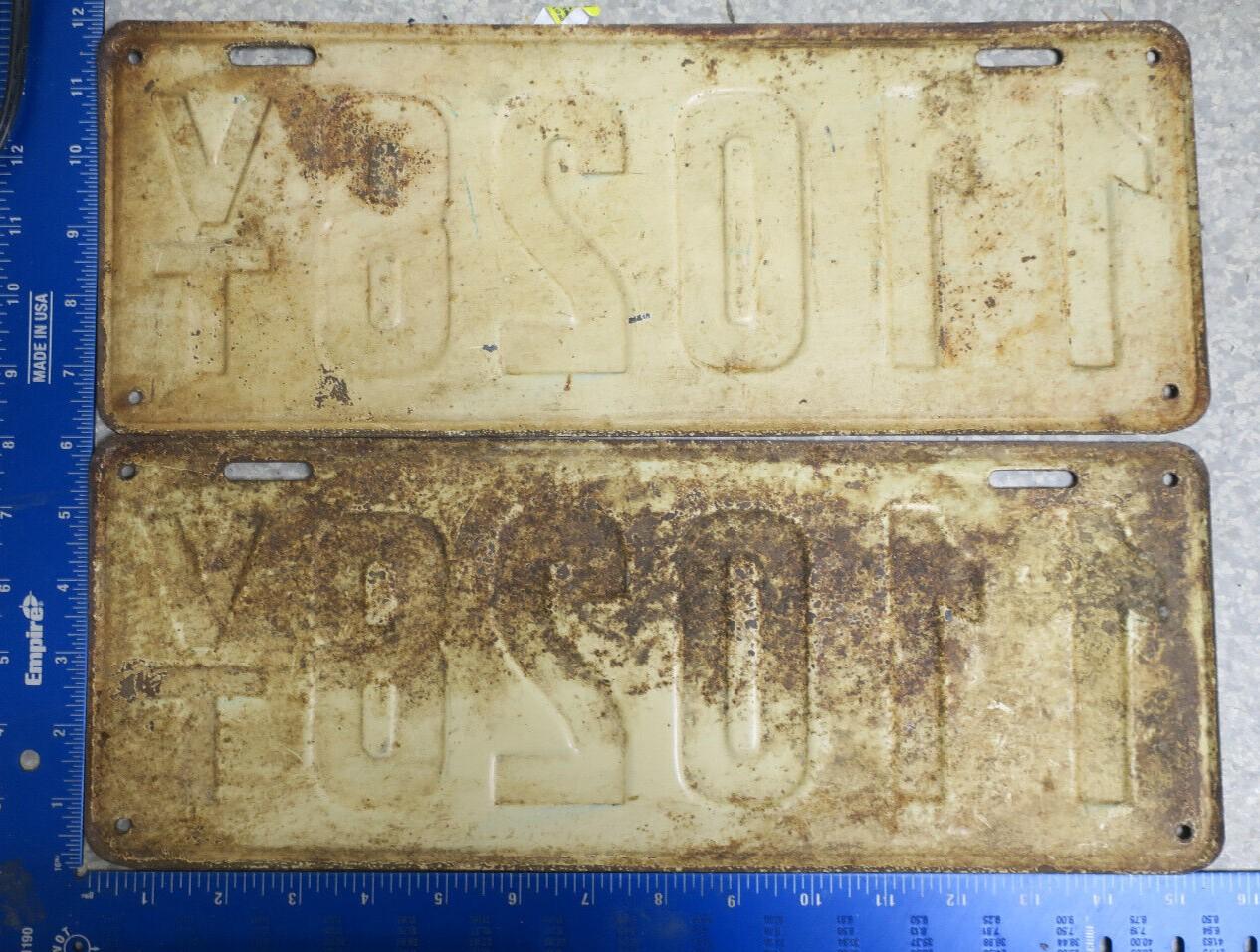 | 1945, старший известный номер, легковые - 80576, грузовики - X8078, прицепы - T 3079, мотоциклы - 469. легковые - 751, 6840, 67520, 77039, обратная сторона. грузовики - X 183. образец знака для отделений дорожной полиции - 00000, обратная сторона. мотоциклы - 137, 456, обратная сторона. |