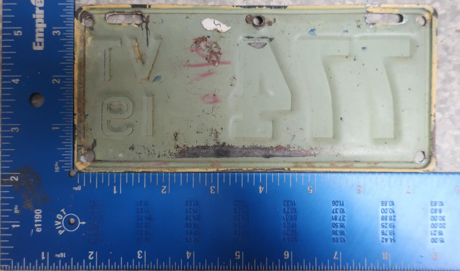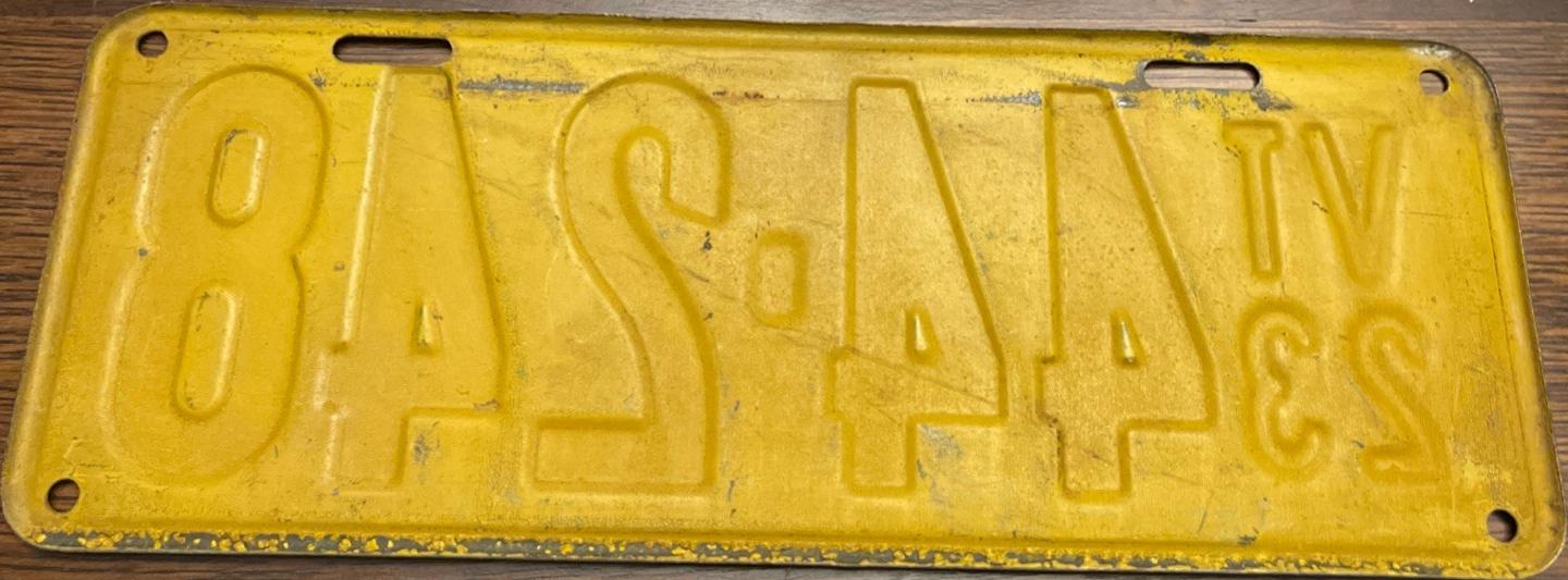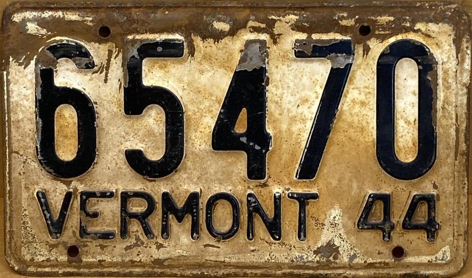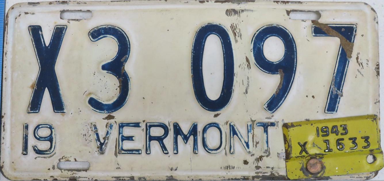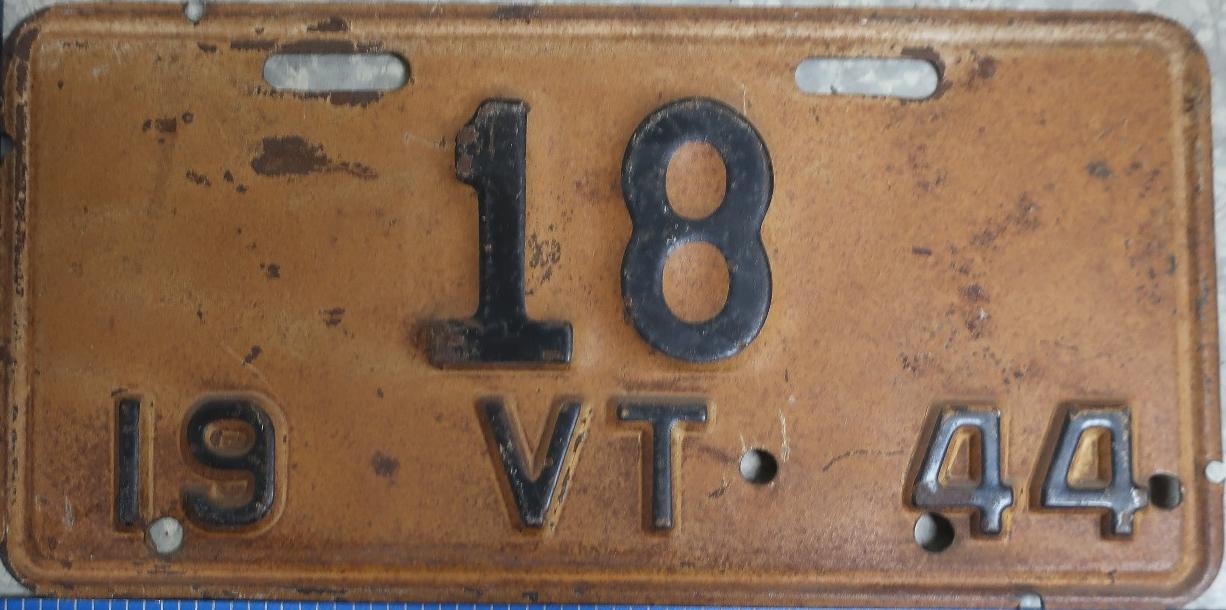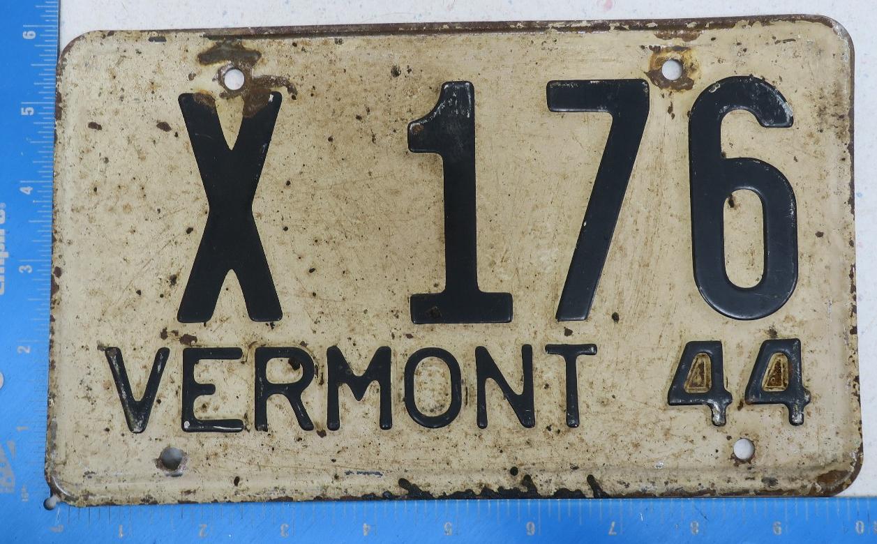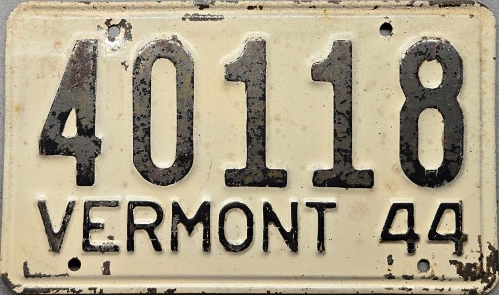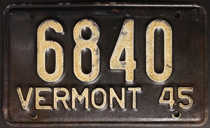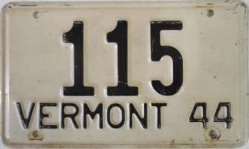 | 1944, старший известный номер, легковые - 73826, грузовики - X6000, прицепы - T 2118, мотоциклы - 250. легковые - 115, 39599, 40118, 62072, 65470, обратная сторона. грузовики - X 176. мотоциклы - 18, обратная сторона. |