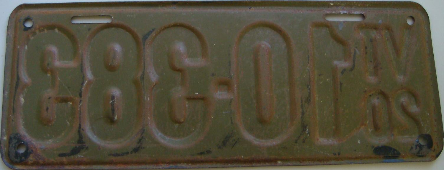 | 1920, старший известный номер, автомобили - 31-547, мотоциклы - 873. автомобили - 476, 2-735, 10-383, 10-443, обратная сторона. дилеры - H-052. мотоциклы - 557, обратная сторона. |