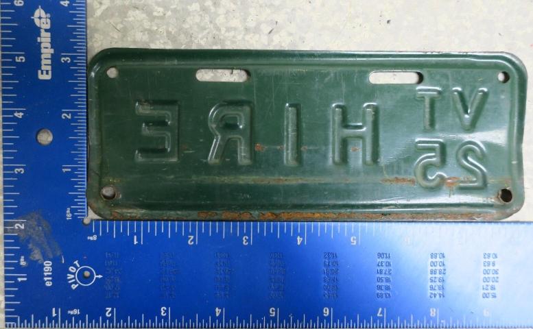 | 1925, старший известный номер, легковые - 100 ... 63-519, грузовики - 5-278, ремонтники - 484, мотоциклы - 685. легковые - 1-966, 28-301, 48-563, 53-753, 57-648, обратная сторона. грузовики - 2-333, обратная сторона. дилеры - D-0313 (неправильный перекрас). дополнительный знак наёмных автомобилей дилеров - HIRE, обратная сторона. |