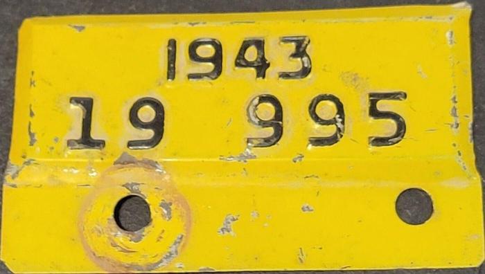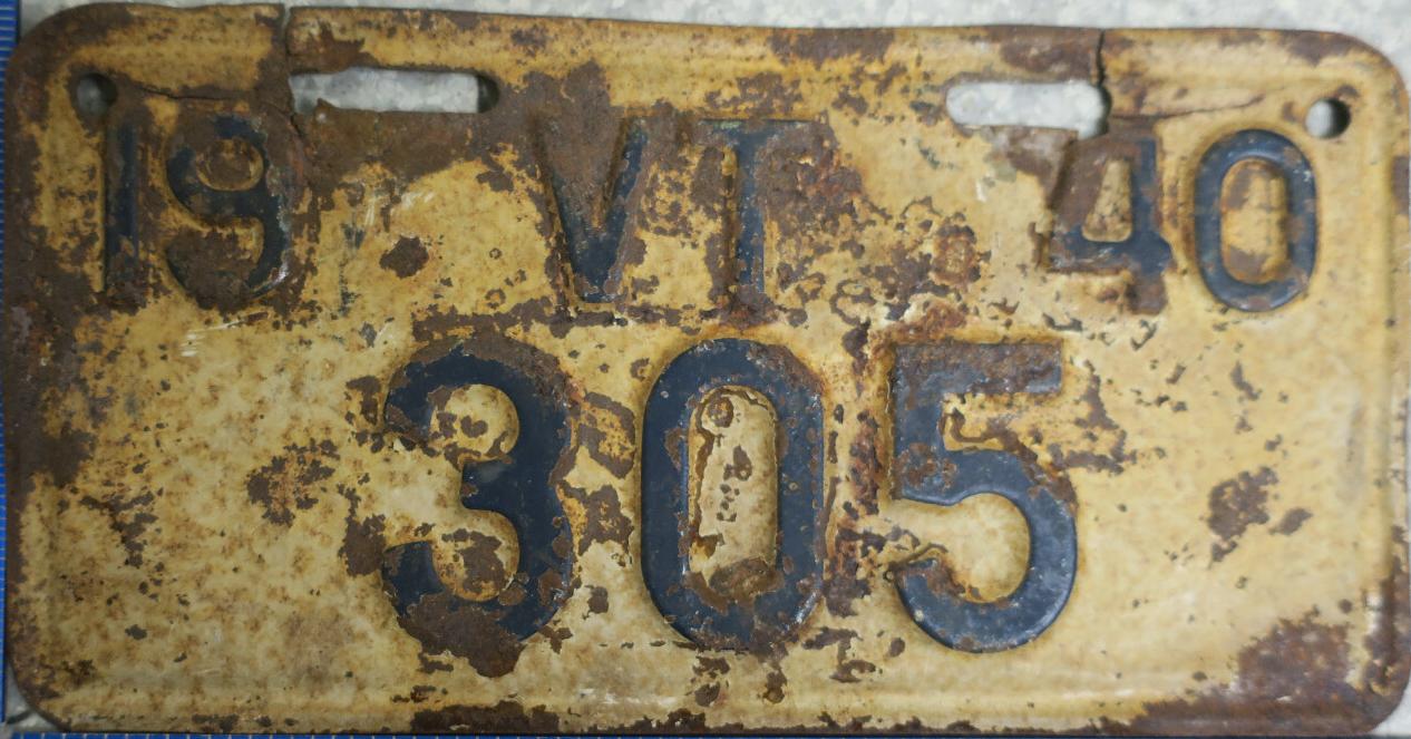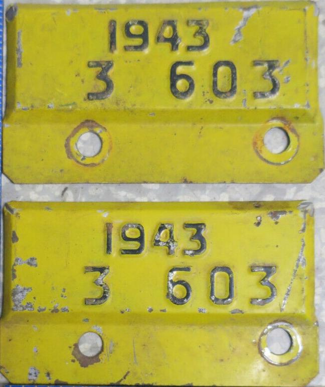 | 1943, старший известный номер таблички продления, легковые - 71 724, грузовики - X 7691, ремонтники - R 255, прицепы - T 212, мотоциклы - M 370. легковые номера 1942 с табличками продления 1943 - 5 596 + 21 188, 48 463 + 38 237, 50 195 + 24 640, 72 152 + 56 245, обратная сторона. грузовые номера 1942 с табличками продления 1943 - X3 097 + X 1633, обратная сторона. таблички крупно - 3 603, 19 995, 25 172, 60 453, обратная сторона. |