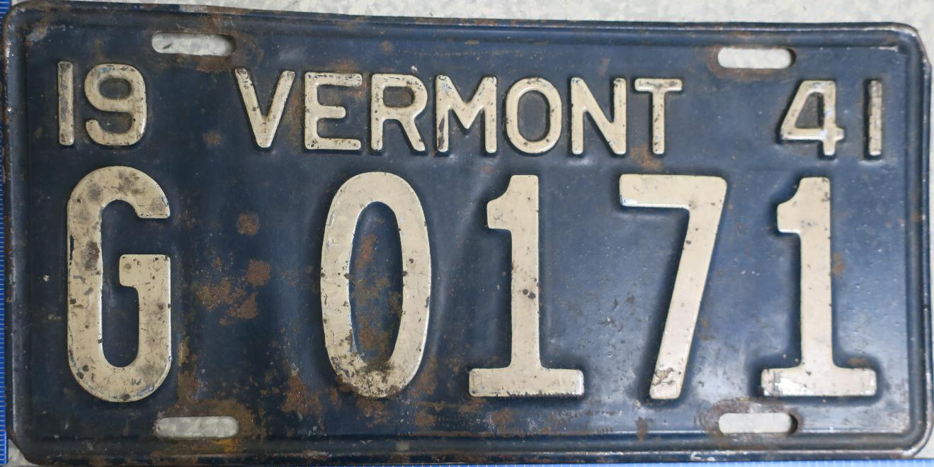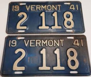 | 1941, старший известный номер, легковые - 86 665, грузовики - X9 083, прицепы - T 1802, мотоциклы - 354. легковые - 364, 2 118, 5 789, 22 435, 70 633, обратная сторона. дилеры, знаки одного и того же дилера - A 0171, G 0171, K 0171, обратная сторона. образец знака для отделений дорожной полиции - 00 000, обратная сторона. прицепы - T 601. мотоциклы - 85, обратная сторона. украшение на номер в честь 150-летия штата. |
