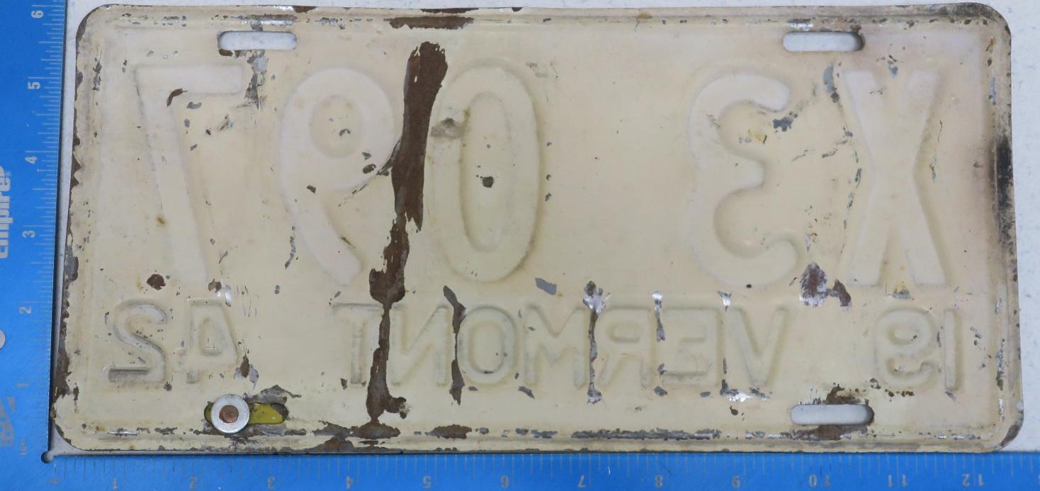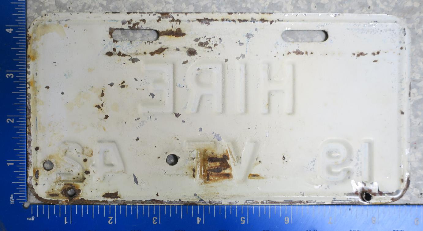 | 1942, старший известный номер, легковые - 87 317, грузовики - X9 684, ремонтники - RP 612, прицепы - T 2796, мотоциклы - 709. легковые - 1 676, 3 595, 16 730, 52 089, 76 245, обратная сторона. грузовики - X 777, X9 209, обратная сторона. образец знака для отделений дорожной полиции - 00 000. прицепы - T 1365. дополнительный знак наёмных автомобилей дилеров - HIRE, обратная сторона. мотоциклы - 392, обратная сторона. |