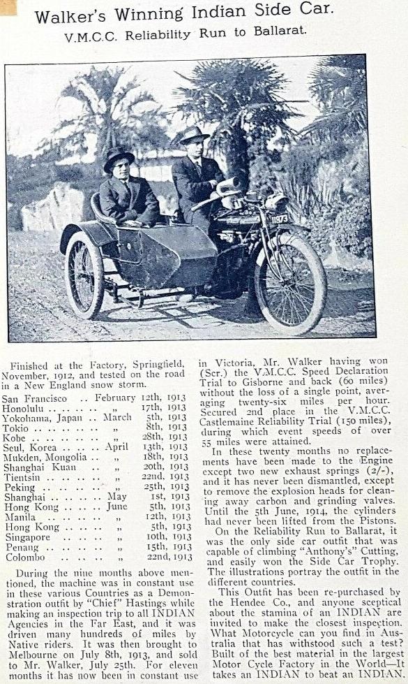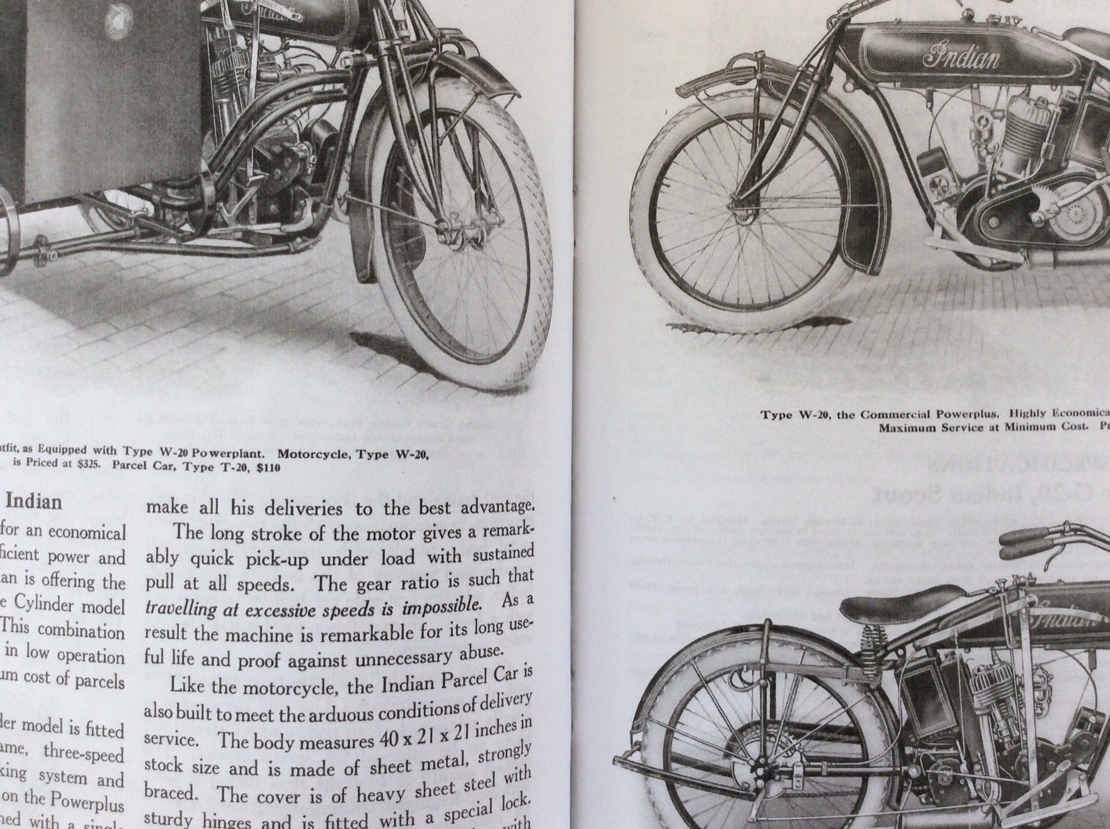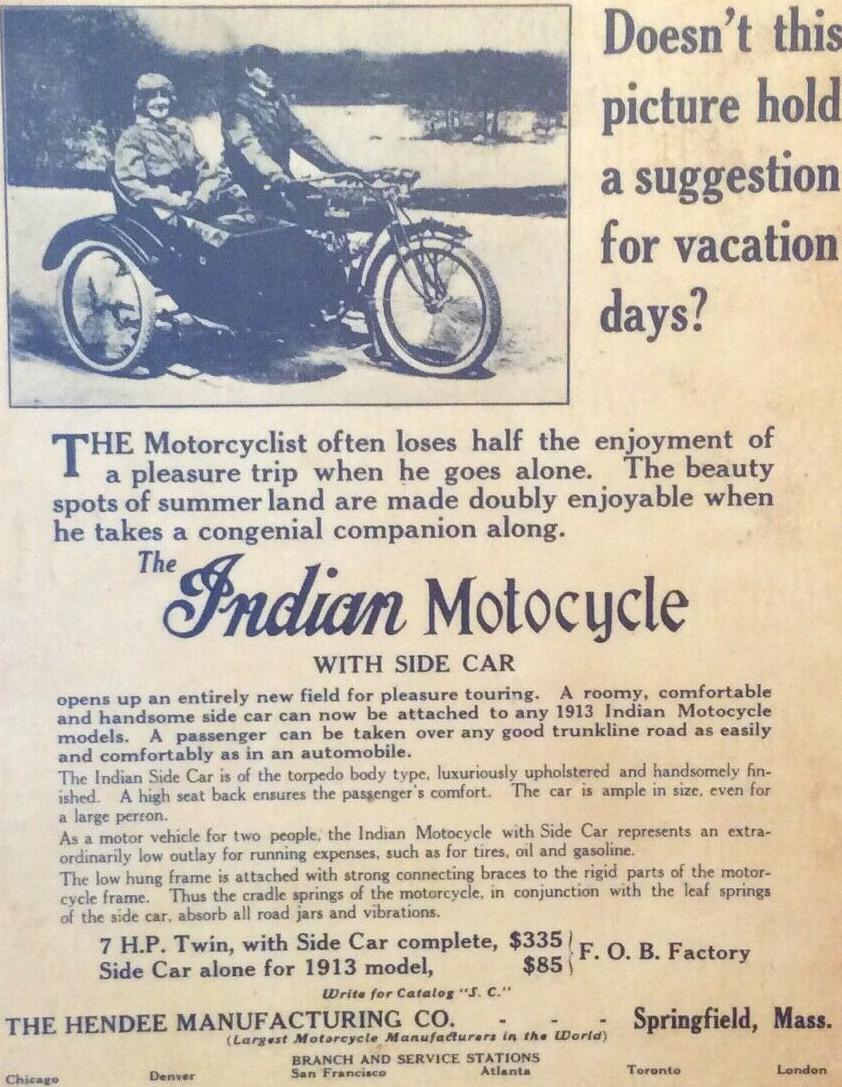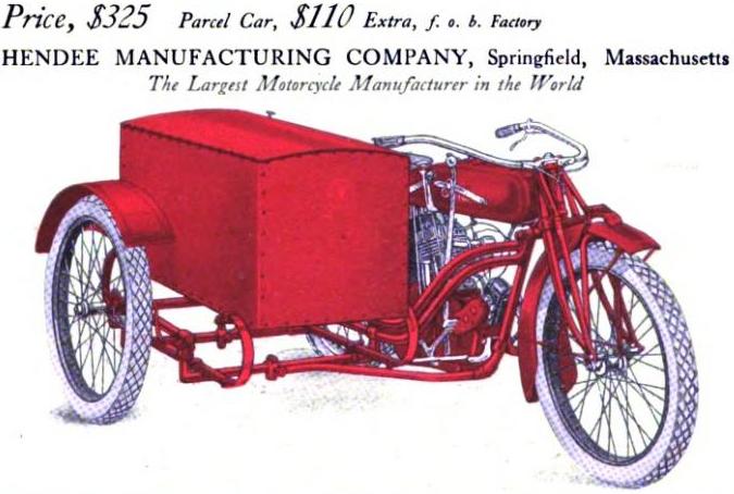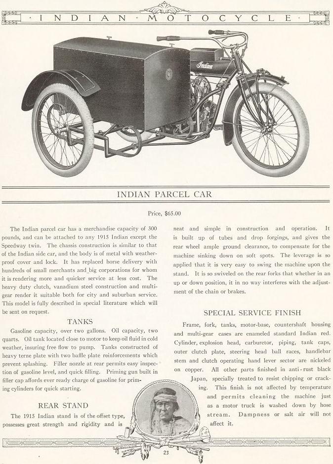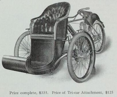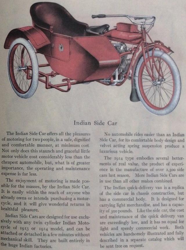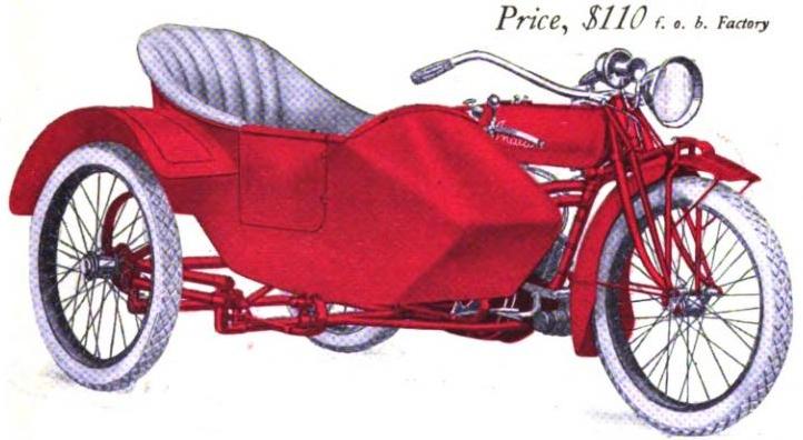 | 1922 Model H, Chief, magneto ignition, $435 Model SH, Princess Sidecar, $115 |
