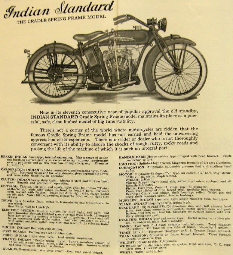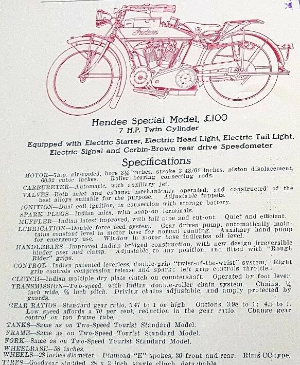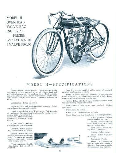 | 1923 Model H, Chief, magneto ignition, ?$ Model HP, Big Chief, magneto ignition, ?$, 12hp Model SH, Princess Sidecar, ?$ The only difference between H and HP is in motor displacement, no outer difference all the years. |