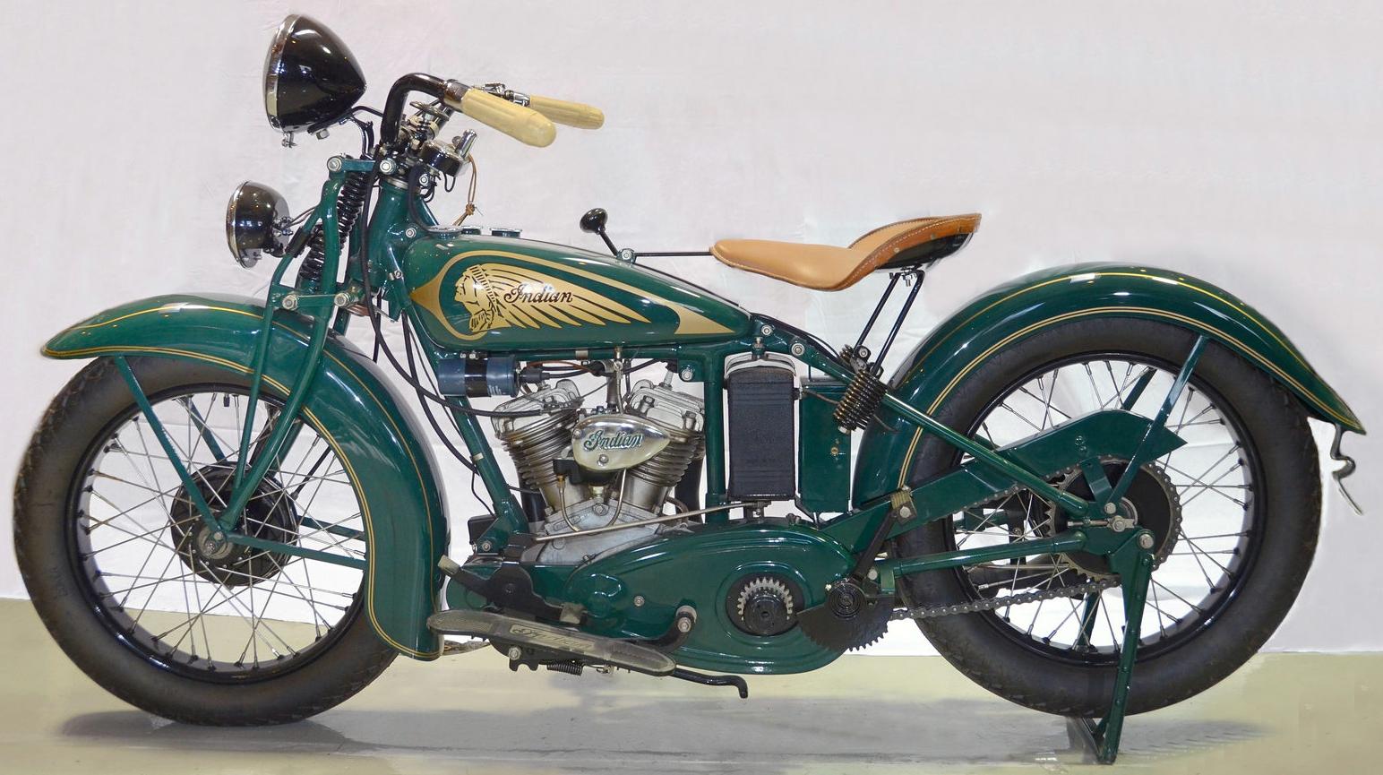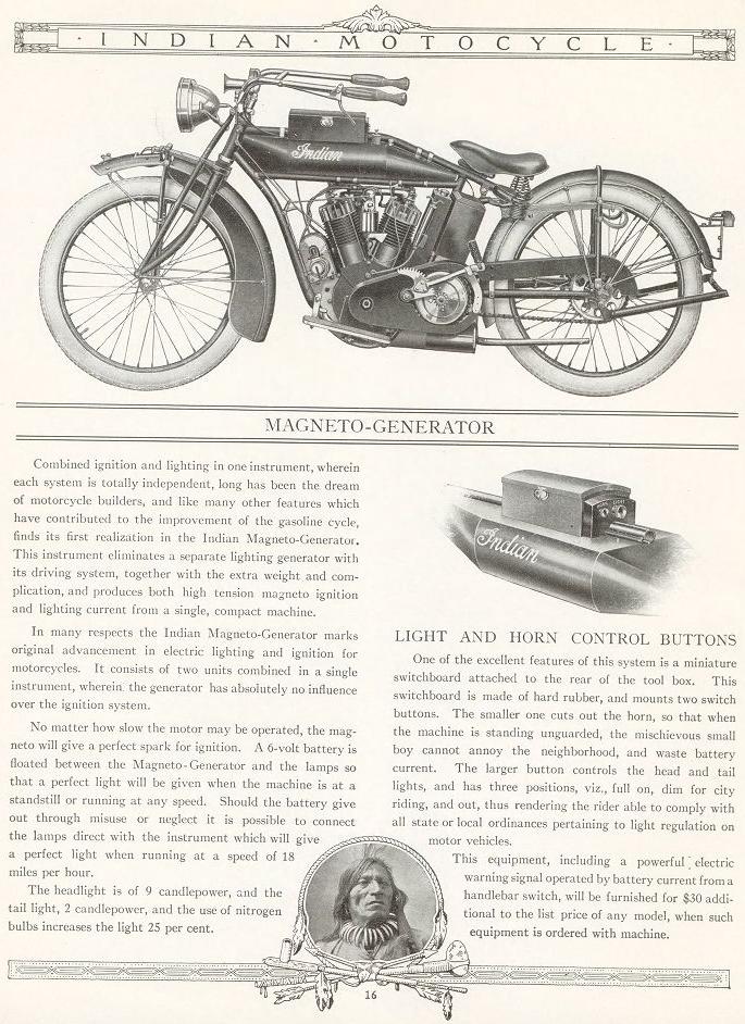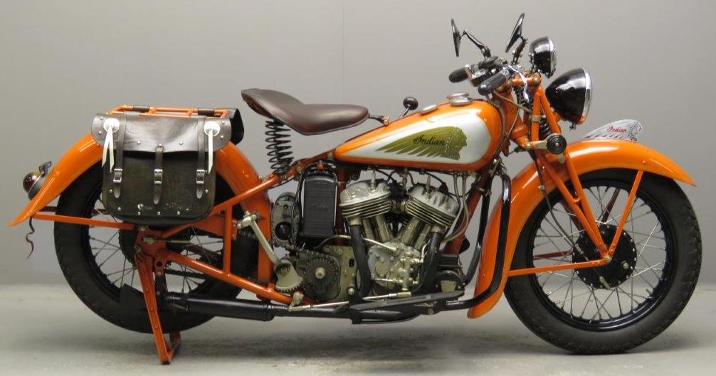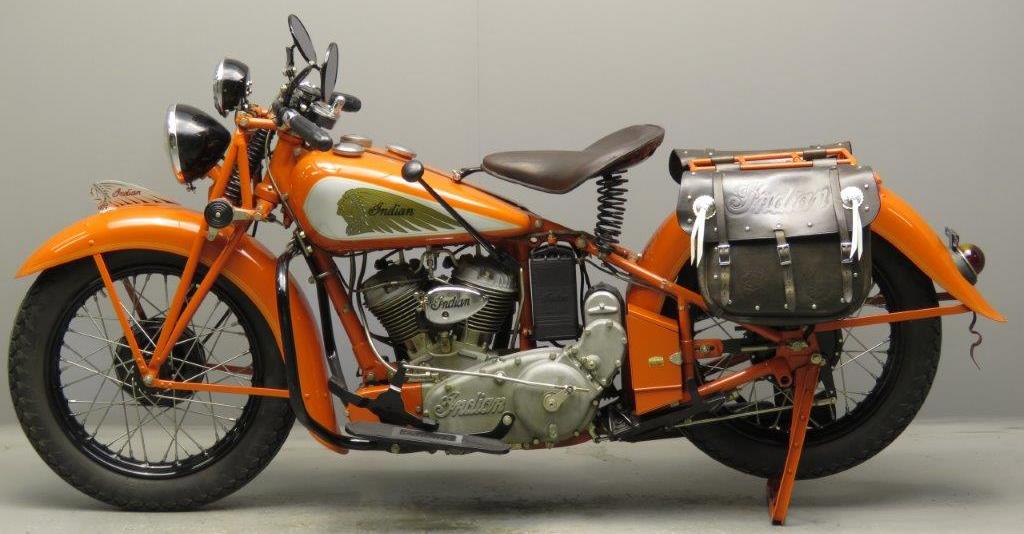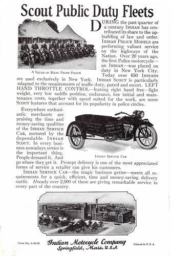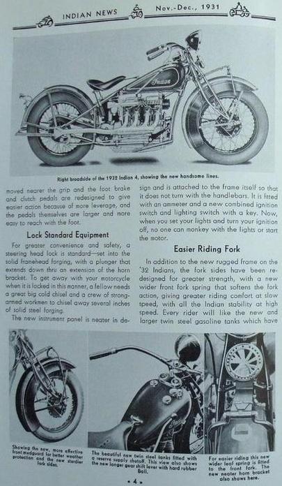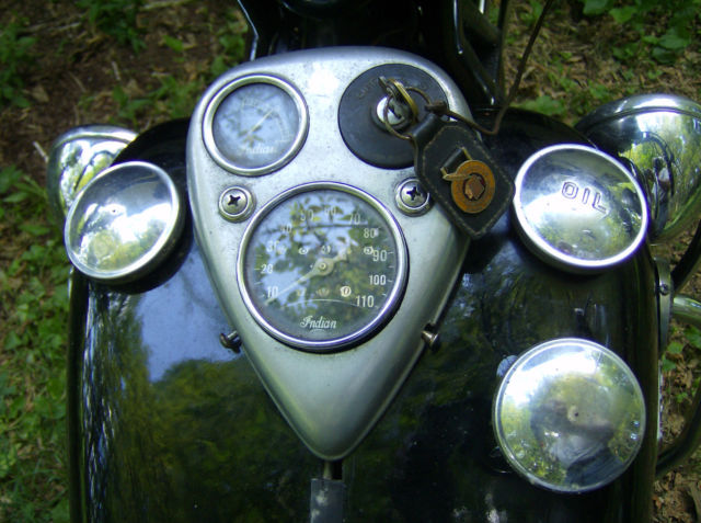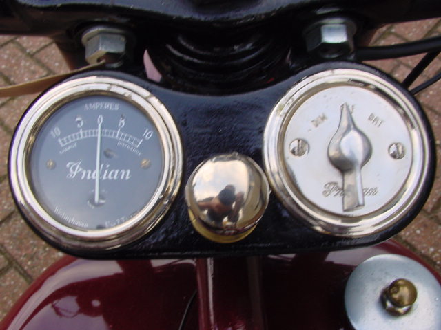 1930: 143k 99k 111k 13k (Berlin, 1934) 1931: 62k (horn below the headlight) 126k (N.Y. police) 41k (Korea, 1931) | ![]() cast aluminium, saddle-type, late 1931 - cast-iron tanks (indian head is wrong, must be "Indian" word) | ![]() | ![]() |