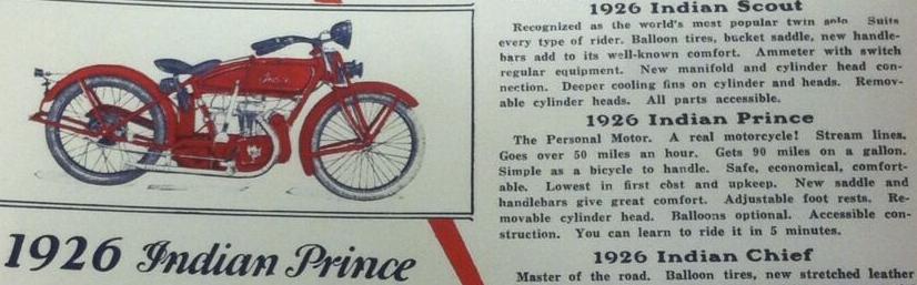 | 1926 Model H, Chief, magneto ignition, ?$ Model HP, Big Chief, magneto ignition, ?$ Big Chief "80", 80 cu. in., prototype Model SH, Princess Sidecar, ?$ |