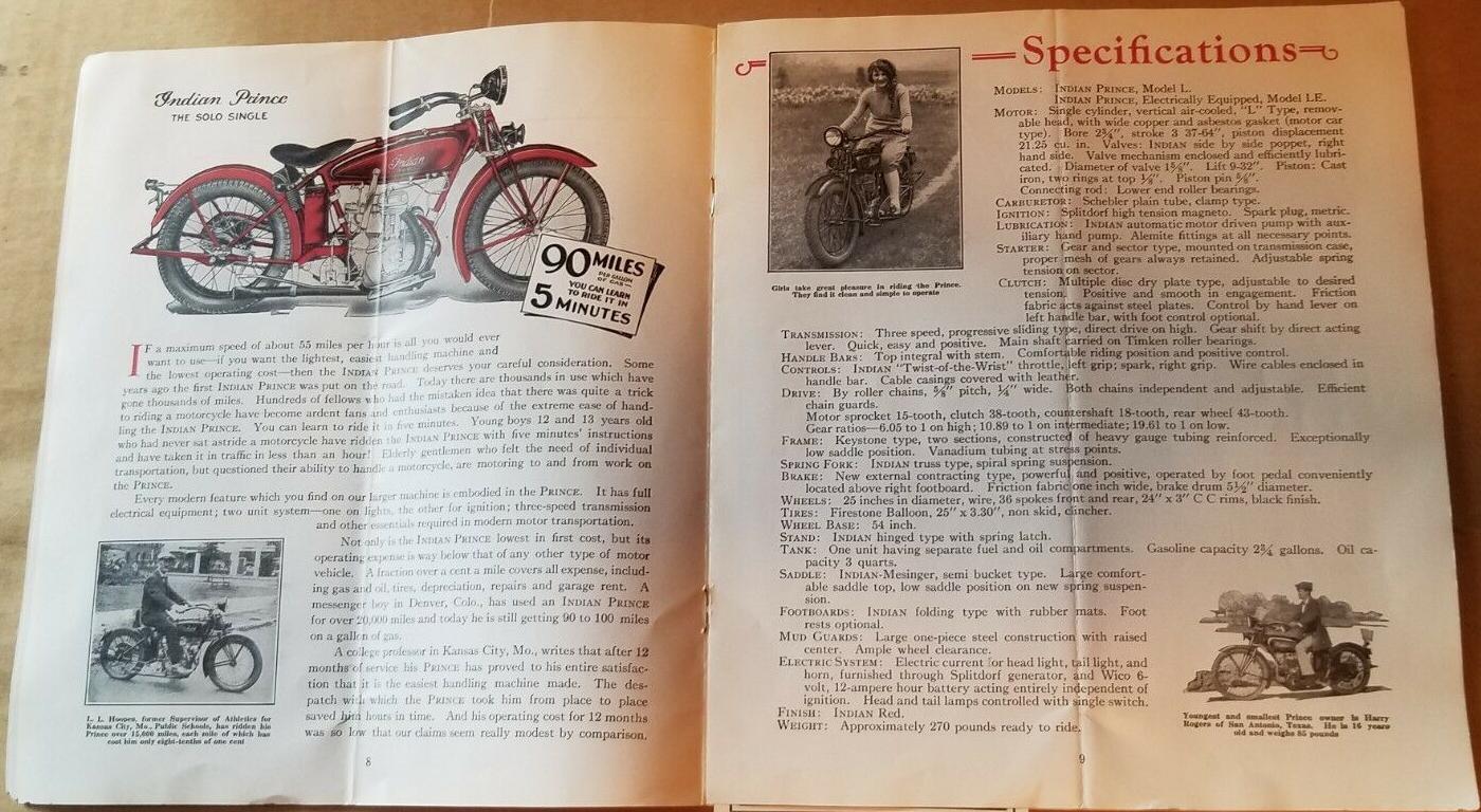 | 1924 Model H, Chief, magneto ignition, ?$ Model HP, Big Chief, magneto ignition, ?$ Model SH, Princess Sidecar, ?$ |