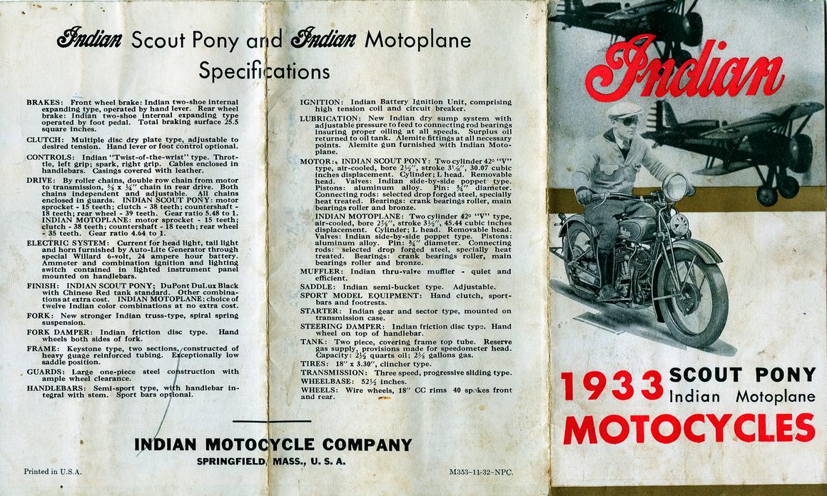 | 1933 Model 333B Chief, battery ignition, ?$ Model 333M Chief, magneto ignition, ?$ Standard (ex-Princess) Sidecar, ?$ Sport Sidecar, ?$ |
