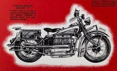 | 1935 335B Chief, battery ignition, 340$ 335BY Chief, battery ignition, Y motor, 352$ 335M Chief, magneto ignition, 360$ 335MY Chief, magneto ignition, Y motor, 372$ Y motor has Y-shaped inlet manifolds, larger cooling fins and aluminium heads Standard Sidecar, ?$ Sport Sidecar, ?$ | 239k 335M 48k (New York City police, 1937) 42k 335MY (police) | ![]() |