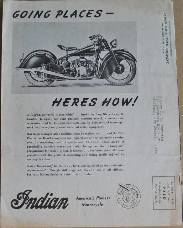 Chief 343: Motor Nr. CDC101 - Frame Nr. 343101 - 741B (military): Motor Nr. GDA contnd. Frame Nr. 741 contnd. 841 (military): Motor Nr. HDA contnd. Frame Nr. 841 contnd. |