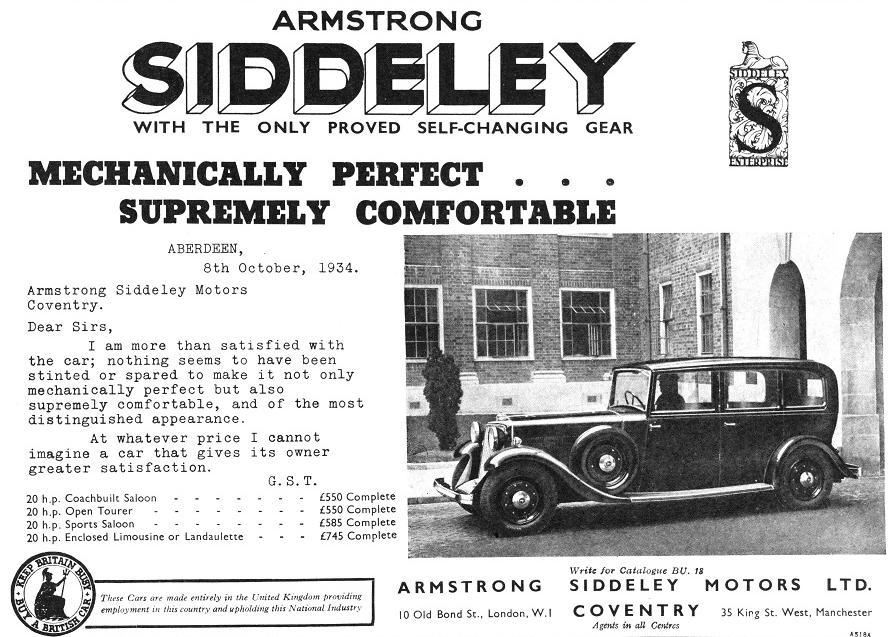 Армстронг Сиддли Специал, 1933 - 1936, рядный 6-цил. OHV - 4966 куб. см (31/2 дюйма (88,9 мм) x 51/4 дюйма (133,35 мм)) - 125 л.с., 253 штуки два размера колёсной базы шасси - короткая, short wheelbase, swb - 11 футов (3353 мм), c 1935 - 11 футов 3/4 дюйма (3372 мм), и длинная, long wheelbase, lwb - 12 футов (3658 мм) 4-просветный 5-местный спортс салон (sports saloon, swb) - £965 (1935), £1050 (VIII 1935), 1935, 146кБ, 1935, вид сзади, 140кБ, 1934, 300кБ, 1934, 44кБ, 1934, вид сзади, 42кБ 4-просветный 4-дверный Тиккфорд салон с кузовом фирмы фирмы Салмонс и сыновья (Tickford saloon, Salmons & Sons, swb) - £?, 1933, 180кБ, 1933, вид сзади, 107кБ 2-просветное 4-местное седанка купе с кузовом фирмы Ванден Плас (Vanden Plas sedanca coupe, swb) - £?, 1934, дальше не открывается, 166кБ, 1934, вид сзади, 158кБ 4-просветный 5-местный туринг лимузин (touring limousine, lwb) - £1300 (VIII 1935), 1935, 98кБ |