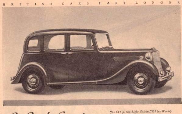 Армстронг Сиддли 14, XI 1935 - 1939, рядный 6-цил. OHV - 1670 куб. см (61 x 95,25 мм) - 45 л.с., 3750 штук (включая модель 12-плюс) 6-просветный 4-дверный 4/5-местный салон (6-light saloon) - £320, 1935, 101кБ, 1936, 276кБ, 1936, вид сзади, 210кБ, поздний 1937, 32кБ, 1937, вид сзади, 206кБ 6-просветный 4-дверный 4/5-местный туринг салон (с багажником), с конца 1937 (6-light touring saloon) - £330, 1938, 13кБ, 1938, вид сзади, 212кБ, 1938, 219кБ 4-просветный 4-дверный 4/5-местный салон (4-light saloon) - £320, 1937, 65кБ |