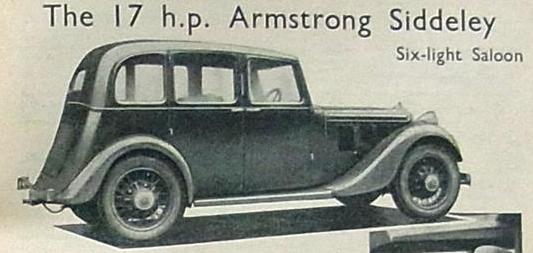 Армстронг Сиддли 17 (17/55), 1934 - 1940, рядный 6-цил. OHV - 2388 куб. см (66,67 (25/8 дюйма) x 114 мм) - 60 л.с., 4260 штук с середины 1937 - горизонтальная хромированная стрела-лувр вместо вертикальных лувров, с середины 1936 - глубокие крылья с юбкой. три длины шасси, короткое (short wheelbase, swb) 2819 мм, стандартное 2946 мм (standard wheelbase, stdwb), длинное (long wheelbase, lwb) 3137 мм 2-дверное 4-местное купе (sports foursome, swb) - £385, 1935, 22кБ 4-просветный 4/5-местный салон (4-light saloon, swb) - £425, 1935, 16кБ 2-просветное 3-позиционное Тиккфорд открытое купе фирмы Салмонс и сыновья (Tickford coupe, Salmons & Sons, swb) - £?, 1936, 151кБ, 1936, 180кБ, 1936, 151кБ, 1936, 134кБ 6-просветный 4/5-местный салон (6-light saloon, stdwb) - £395, 1937, 25кБ 6-просветный 4/5-местный туринг салон (6-light touring saloon, с багажником, stdwb) - £465, 1936, 31кБ 4-просветный 4-дверный 4/5-местный Редферн турер (Redfern tourer, stdwb) - £?, 1938, 271кБ, 1938, 204кБ 4-просветный 4/5-местный Аталанта салон (4-light Atalanta saloon, lwb) - £525, 1938, 70кБ 4-просветный 4/5-местный спортс салон (sports saloon, stdwb) - £495, австралийский местный кузов, 1937, 229кБ 4-просветный 4-дверный Тиккфорд салон (Tickford saloon = кабриолимузин, lwb) - £?, 1935, 16кБ 6-просветный 5-местный салон (6-light saloon, lwb) - £475, 1935, 58кБ 6-просветный 5-местный лимузин (6-light limousine, lwb) - £?, 1937, 163кБ, 1937, 140кБ, 1937, 97кБ 6-просветный 7-местный лимузин (6-light limousine, lwb) - £585, 1938, 33кБ, 1938, 33кБ, 1938, 29кБ, 1938, 39кБ |