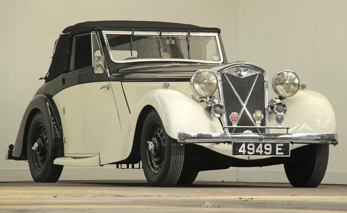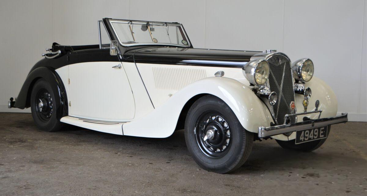 Бритиш Салмcон 14hp (S4D), 1937-1938, 4-цил. 2xOHC, 47 л.с., 1596,0 см3, независимая передняя подвеска, всё ещё ранняя облицовка, но дисковые колёса с центральной гайкой, 48(?) штук