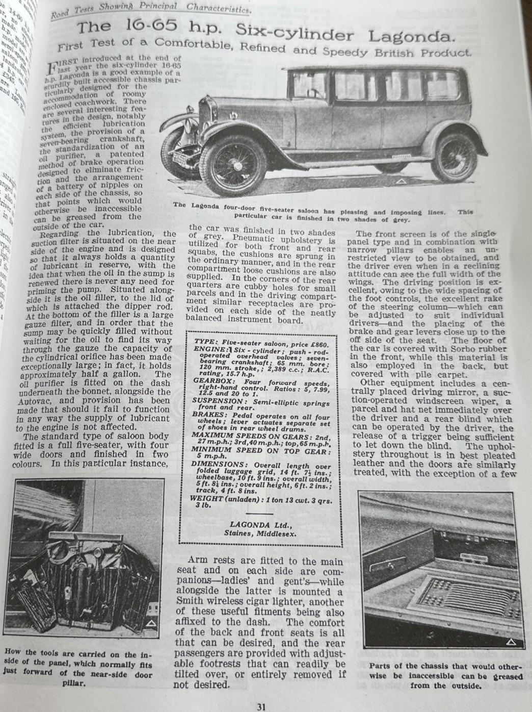 Лагонда 16-65 hp, 1926 - 1930, 720 штук (включая модель 3-литра) 1926: рядный 6-цил. OHV - 2389,2 куб. см (65 x 120 мм) - 65 л.с. 1927-1930: рядный 6-цил. OHV - 2692,3 куб. см (69 x 120 мм) - ? л.с. заводской седан - 1927, 311кБ. |