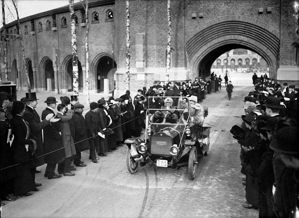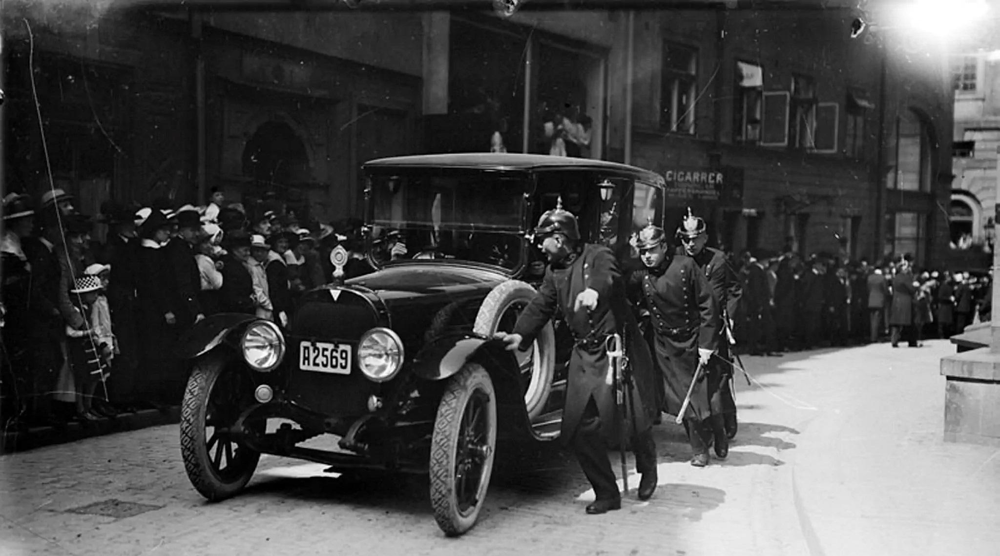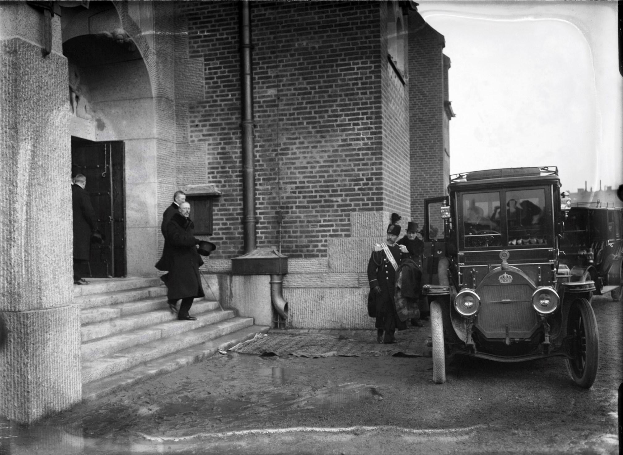 Корона (Бенц лимузин Густава V (со шляпой в руке), Стокгольм, церковь Энгельбректа, 1914, 341кБ).