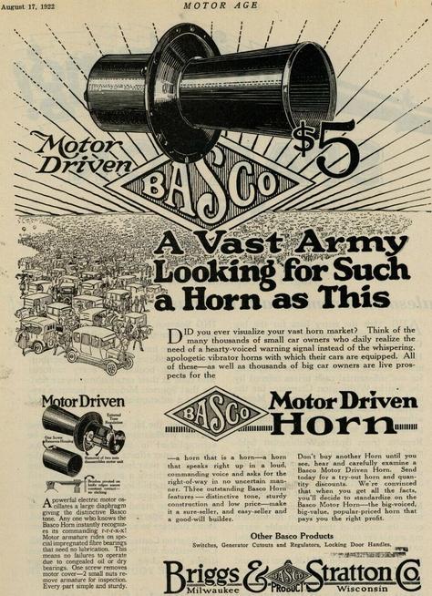 In parallel Briggs & Stratton produced automobile switches (151k), generator cutouts (151k), horns (91k), keys (46k), stationary engines for washing machines (55k)