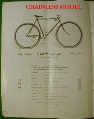1903 Light Chainless Model, $75, Sager Gear, cushion frame, coaster brake.