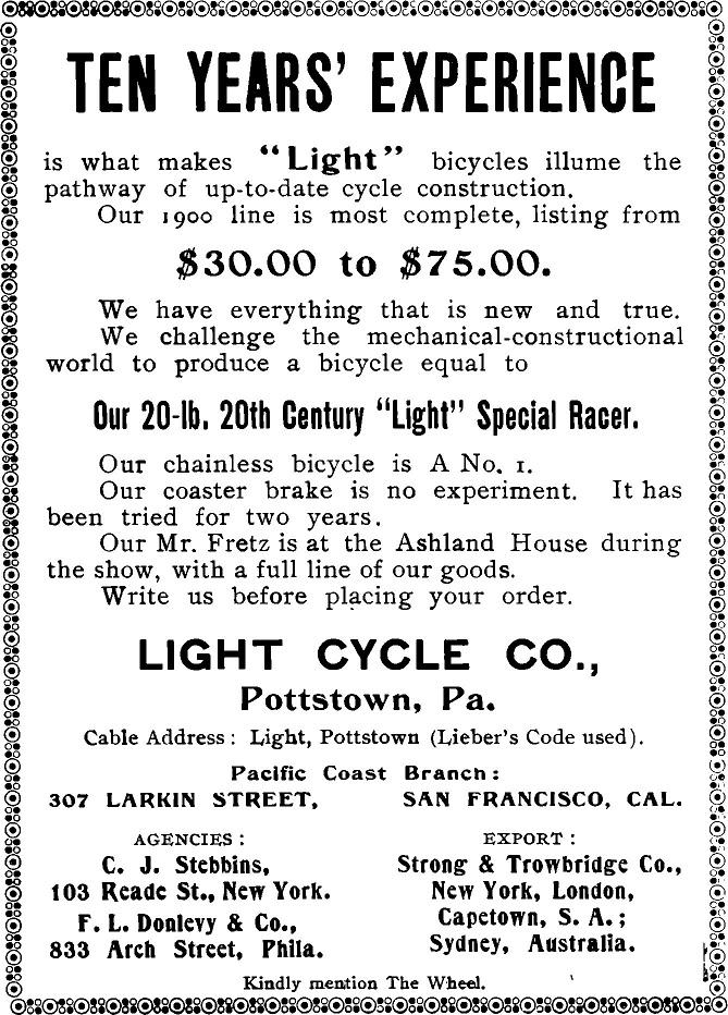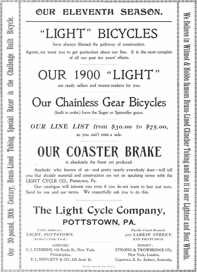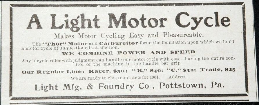 1903, Light Cycle Co., Pottstown, Pennsylvania, USA.