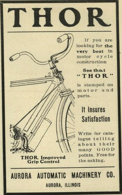 1903-1905 Light motorcycles are clones of Indian "Camel Back", both assembled from Thor units set from the Aurora Automatic Machinery Co.
