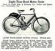 1905 Light Thor-Bred, Thor, 1-cyl. F-head 13/4hp, 15.85 cu in (259.8cc), bore 219/32", stroke 3", battery ignition, 1-speed, chain drive, 30 mph, $210, 5k photo.