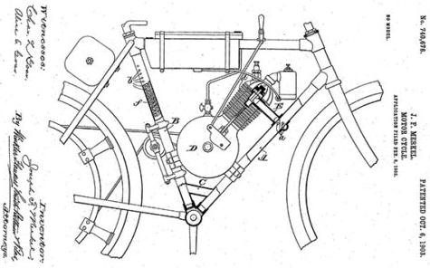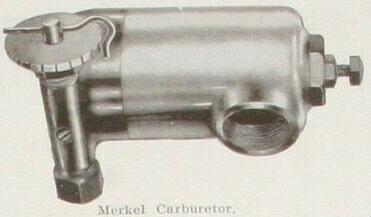 1902 The Merkel, 1-cyl. F-head, 21/4hp, 14.21 cu. in. (232.8cc), bore 25/8", stroke 25/8", battery ignition, 1-speed, flat belt drive, ? mph, $?, 28k patent from 6 X 1903, motor, 13k, carburetor, 10k.