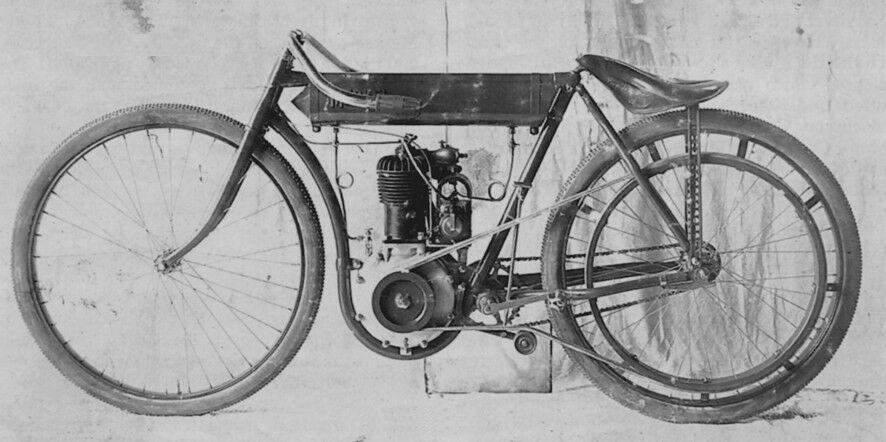 1904 (new carburetor, two mudguards and instrument bag on the rear wheel appeared, battery moved to over rear wheel)