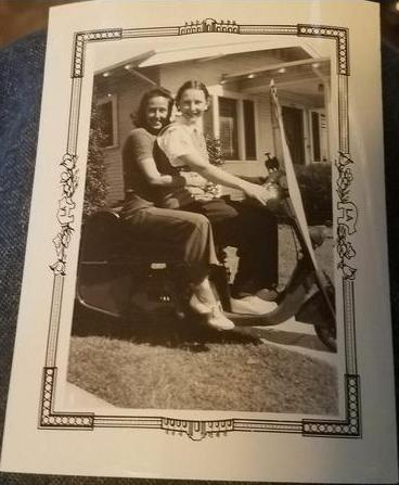 1940 Moto-Scoot tandem with screen, 28k 1940 photo
