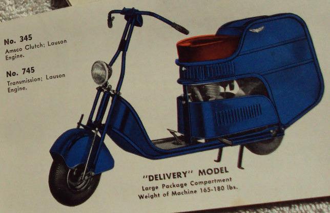 1945 Model 345 delivery, 2,3hp Lauson TLC 320 motor, 8,95 cu.in. (146,6cc), bore 21/4", stroke 21/4", Amsco clutch, 35mph