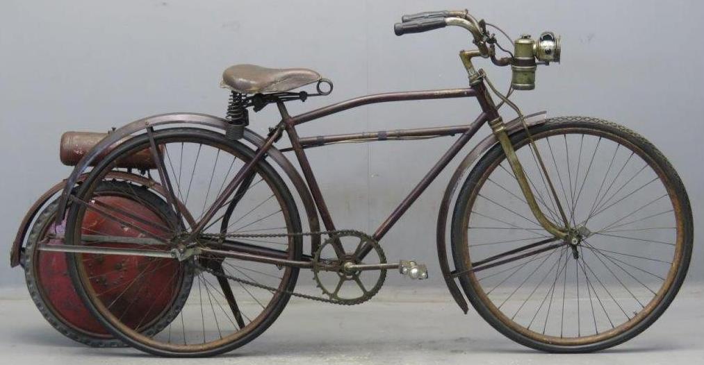 27/16", stroke 21/4", 2-speed, ?hp/?rpm, ? ignition, shaft drive, ? mph, $400,