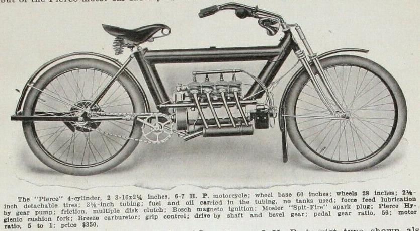 Pierce motorcycles have been mentioned in Motorcycle magazines in 1906 and 1907, but no real production took place. The first