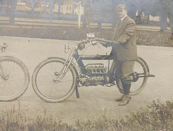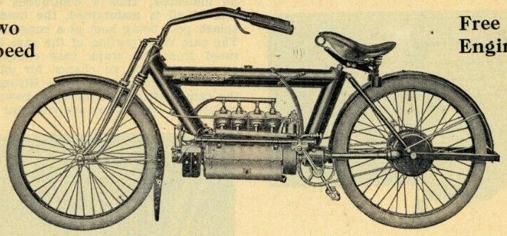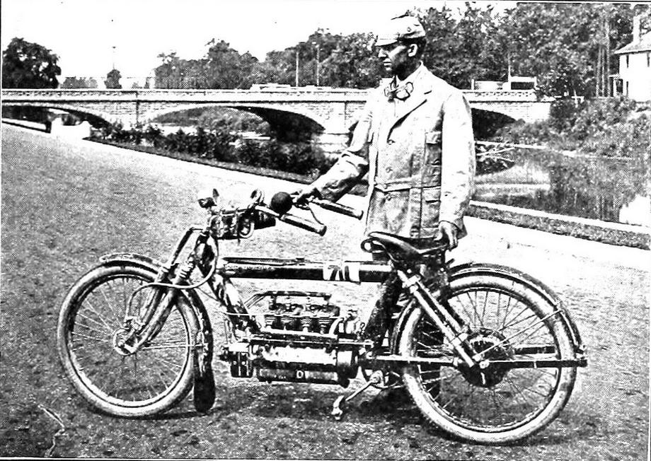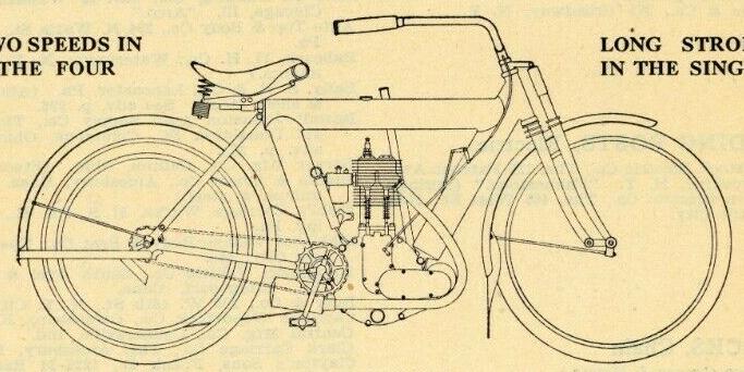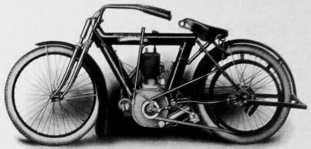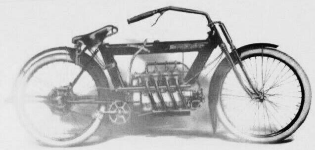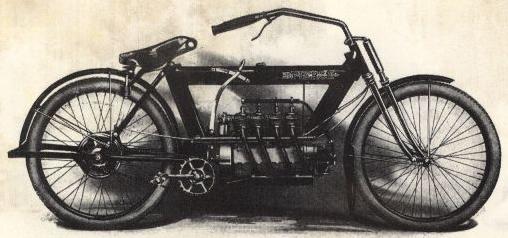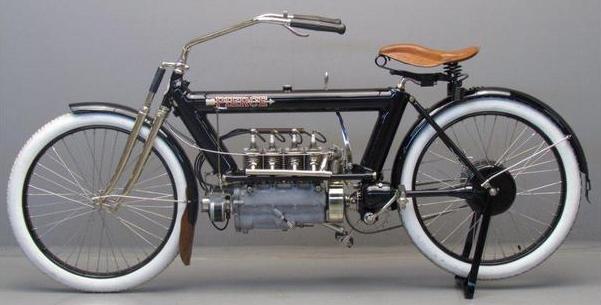 1909 (the first american 4-cylinder motorcycle, gas- and oil tanks inside the frame)